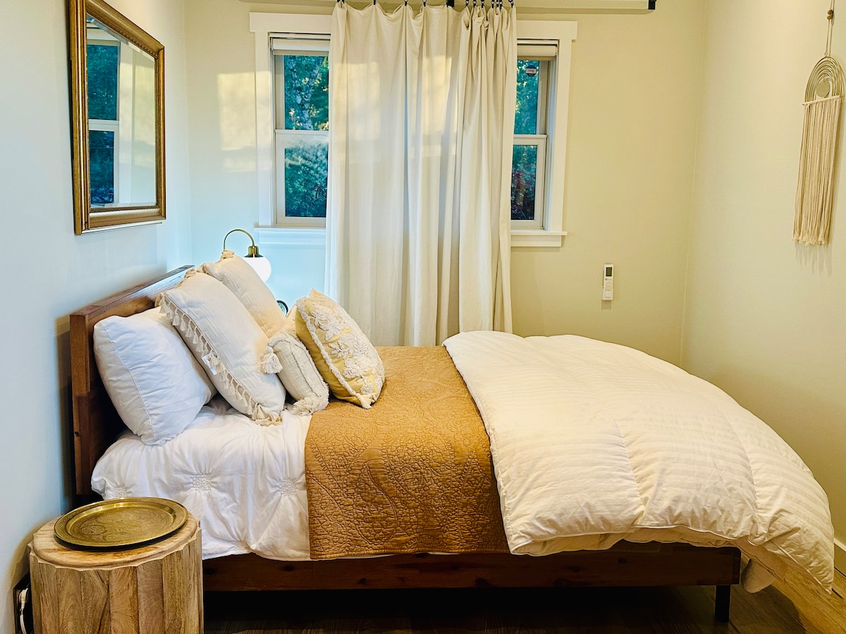 Vores rene, komfortable og private suite med tilhørende badeværelse har egen indgang og lille terrasse (værtstilladelse: 181359). Mens det er knyttet til hovedhuset (ja, du vil sandsynligvis høre os fra tid til anden🤓), er det helt privat, aflåst, plads, der er en ideel base til at udforske og nyde alt, hvad Santa Cruz tilbyder. Vores perfekte tilflugtssted for to er 3/4 mile fra s.c. Harbor og centralt beliggende mellem Capitola og downtown Santa Cruz.