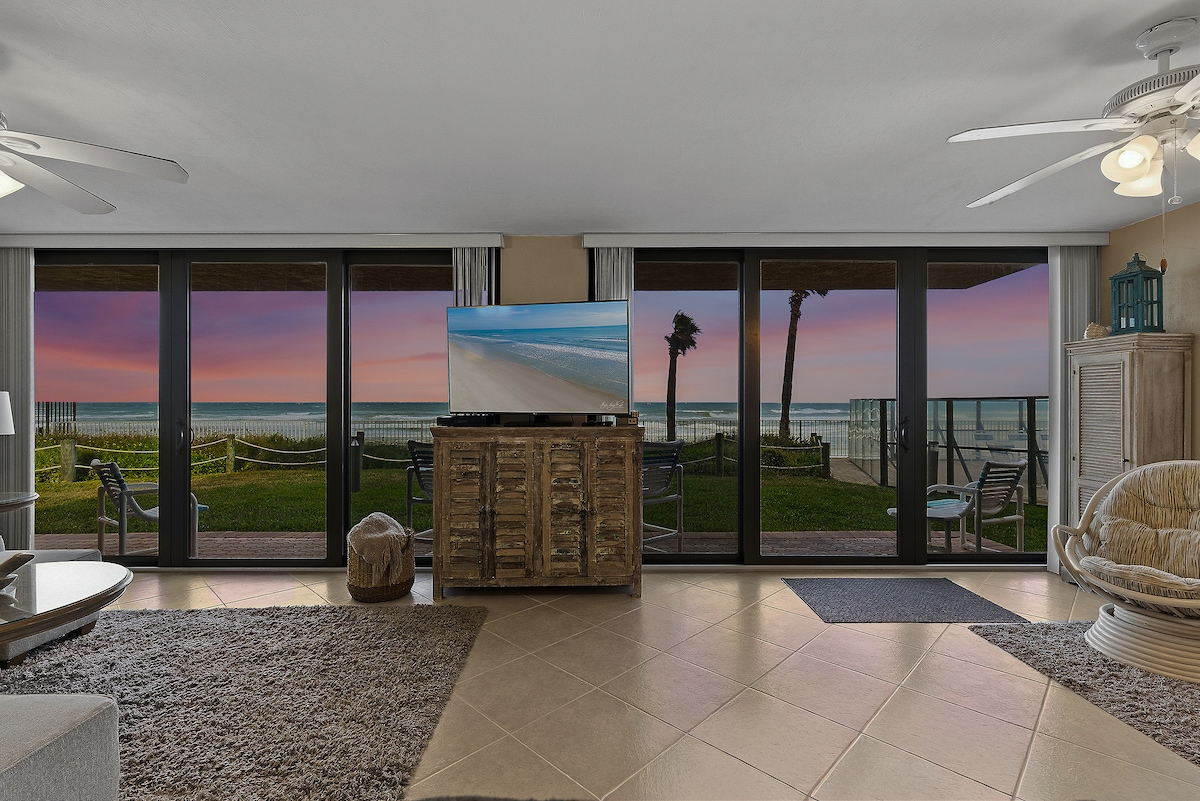 We are located on Daytona Beach a 1 minute walk through the pool area to be on the beach. With open pool Netflix Included, Experience our newly renovated King room studio, large balcony with amazing beachfront views it feels like you are on a cruise ship over the ocean. We have all kitchen items needed for cooking and we provide Coffee, cream, sugar .We provide all linens and towels and Beach towels and beach chairs