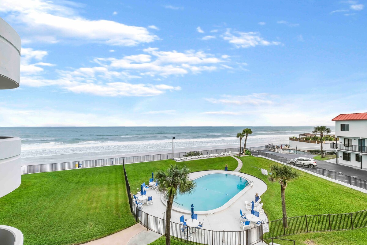 Vores gæsteomtaler siger det hele! Du kan ikke slå beliggenheden af denne fantastiske lejlighed i første sal med havudsigt på den kørfri del af New Smyrna Beach. I strandkomplekset Point East ligger vores enhed direkte ved poolen, så du kan gå lige ud til pooldækket. Denne familievenlige lejlighed blev totalrenoveret i 2023 og er udstyret med alt, hvad du behøver for at føle dig hjemme. Hvis du leder efter husleje i mere end en måned ad gangen, bedes du sende os en besked for at få priser for længerevarende ophold.