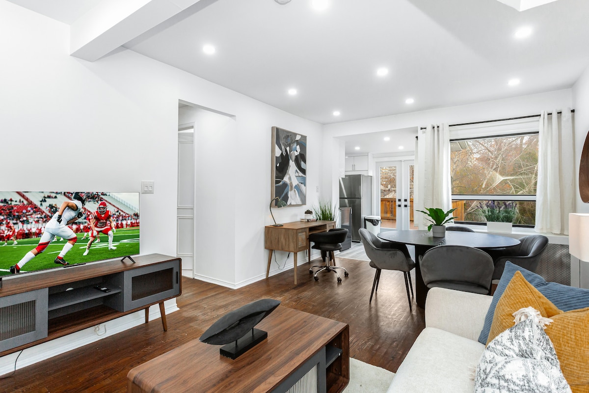 Welcome to our charming 2-bedroom duplex house nestled in the beautiful Deer Park neighbourhood of Toronto! This cozy Airbnb is the perfect home away from home for your stay in the heart of the city, with subway, shops and parks within 10 minutes' walk. This newly renovated house is on the ground floor of a duplex and boasts an amazing sun-room, beautifully furnished living and dining rooms, a fully equipped modern kitchen and 2 comfortable bedrooms. Parking and laundry is available on request.