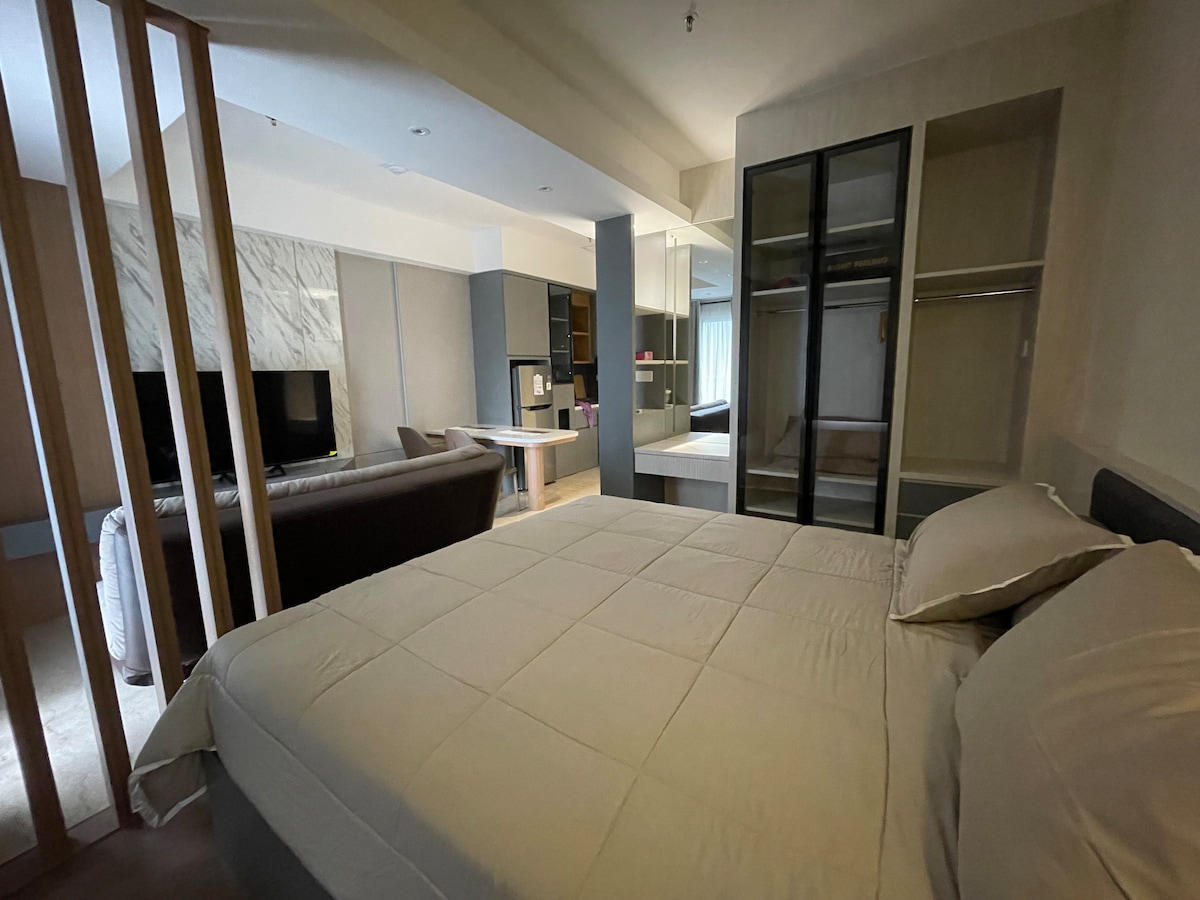 Nyrenoveret lejlighed Podomoro City Deli Medan Tilbyder et luksuriøst ophold med hyggeligt og hjemligt design. Du vil finde en betagende smuk byudsigt direkte fra dit vindue og balkon. Beliggende i centrum af Medan. • Direkte adgang til Podomoro Mall lige fra lejlighedens lobby • Overfor JW Marriot Hotel • Sun & CP 8 minutter • Meget smuk udsigt over byen • Fuldt møbleret Lux • 2 store smart-tv-enheder (med Netflix, YouTube osv.) • Hurtig wi-fi • Luftrenser