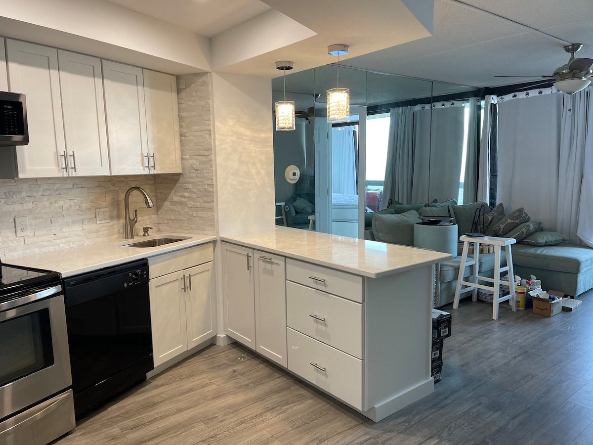 Helt fantastisk atelierlejlighed i det ikoniske Golden Sands! Privat balkon med fantastisk direkte havudsigt og udsigt over bygningens soldæk. Opdateret køkken med apparater i rustfrit stål. Murphy-seng og sovesofa giver plads til 4 personer i enheden. Inkluderer HBOMAX, Disney+ og elektrisk pejs. Stilfuldt badeværelse med toilet og bruser bekvemt adskilt fra vasken. Bygningen tilbyder restauranter, pools, spilrum og meget mere! Golden Sands har et registreringsgebyr på 75 dollars.