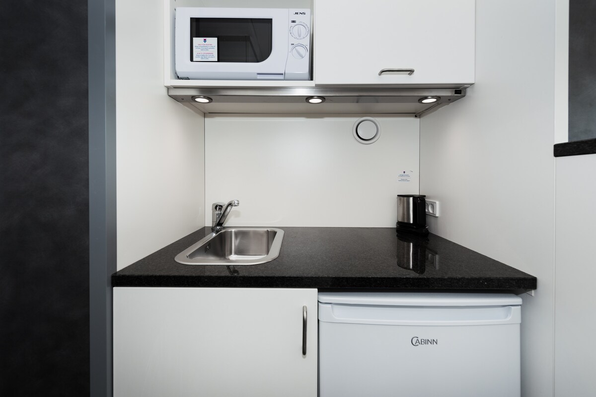 En Single Apartment er til den enlige rejsende, der skal bo i længere tid. Alle Apartments er udstyret med eget badeværelse samt et kitchenette bestående af køleskab, vask, elkedel og mikroovn. Samtidigt kan du nyde godt af rengøring, linnedskift og alle de andre fordele, der er ved at bo på CABINN – vel at mærke uden at betale standard hotelpriser. For når opholdet er langt, er prisen lav.