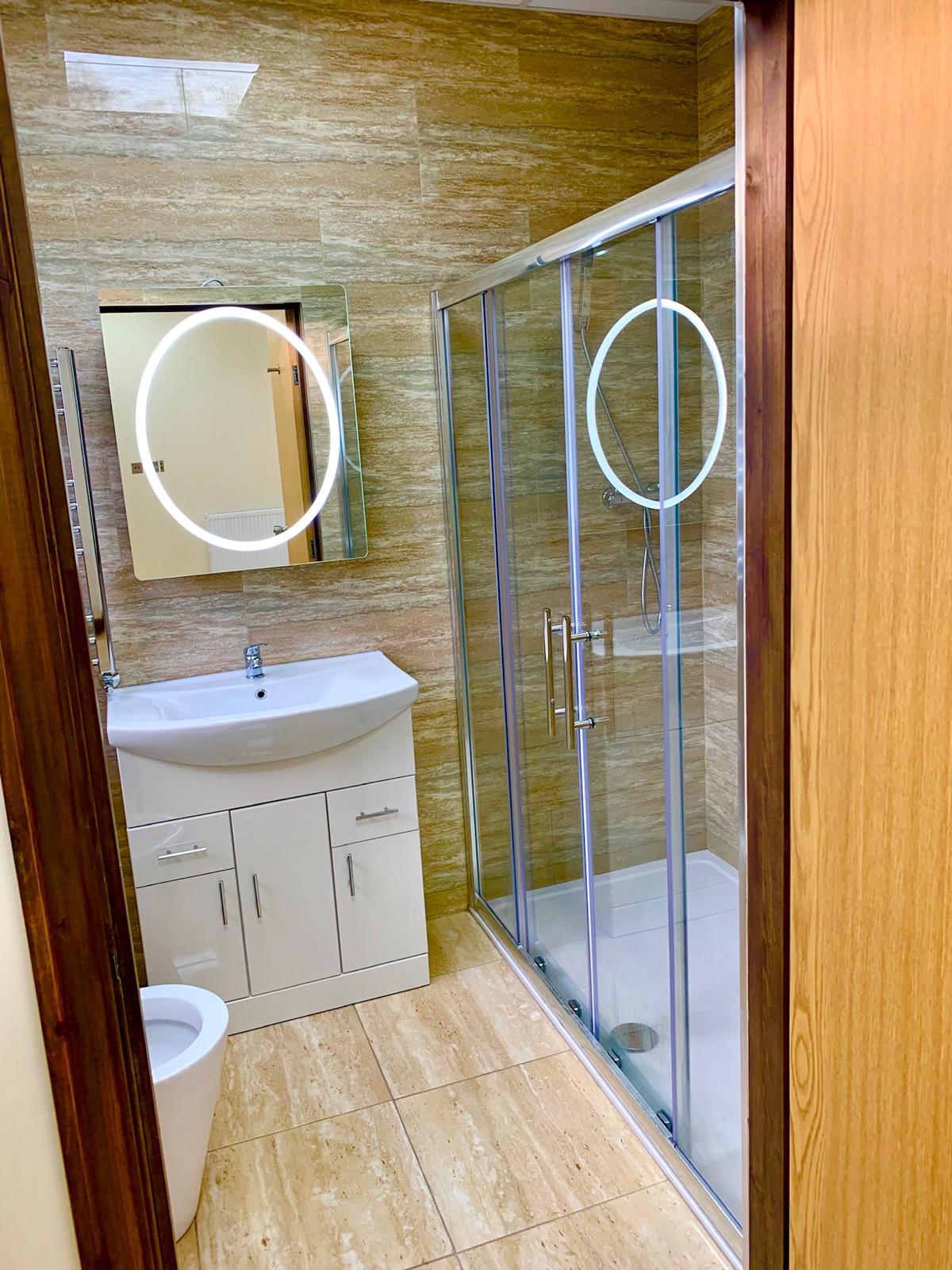 Dette er et stort rummeligt soveværelse med et badeværelse med toilet og god plads til brusebad. Indenfor har du en kingsize-seng, sofa og SmartTV, så du kan oprette forbindelse til din Netflix-konto. (Wi-Fi-oplysninger er angivet. Samt en kedel til te eller kaffe, gratis snacks og vandflasker. Værelset har to badekåber, hjemmesko, en elektrisk radiator, en dampmaskine til dit tøj, ekstra tæppe, toiletartikler, køleskab til kold og varm mad. Vi håber virkelig, at du nyder dit ophold. Hvis du har spørgsmål, er du velkommen til at sende en besked.