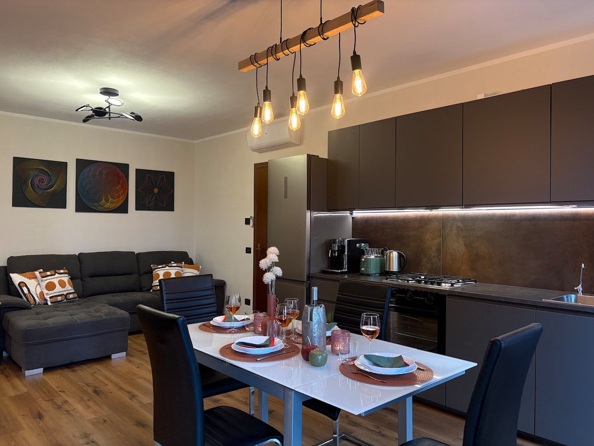 En nyrenoveret lejlighed, der ligger væk fra landsbyens støj og har udsigt til de grønne Garda-skove. Slap af på lejlighedens terrasse med udsigt over søen, gå til stranden eller Lido 84 (bedste restaurant i Italien) på 2 minutter. Vittoriale degli Italiani, natklubben La Torre, Gardone Casino, Gardone-søbredden og dens typiske restauranter er let tilgængelige til fods.