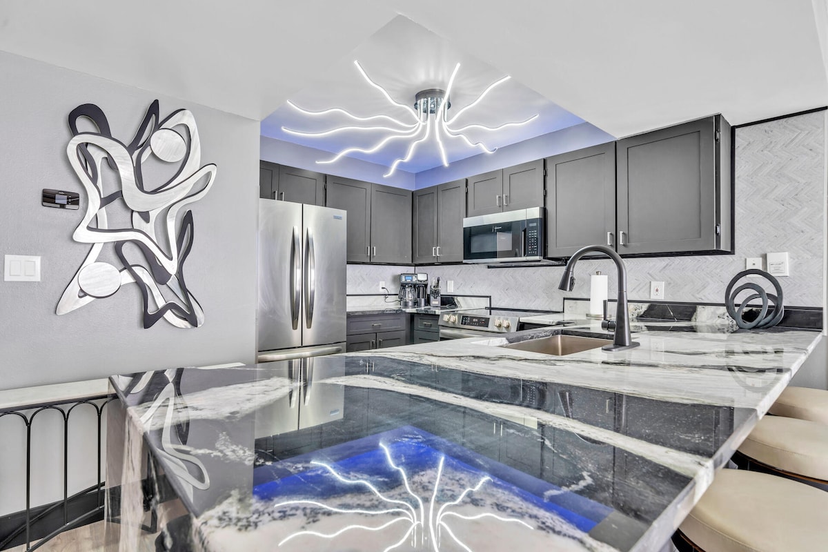 Nyd den bedste udsigt over bugten i denne nyrenoverede højhuslejlighed med privat adgang til stranden i hjertet af Destin! Denne lejlighed ved havet blev renoveret fra gulv til loft den 25. august og har en utrolig panoramaudsigt over havet fra alle værelser. Kun få skridt fra krystalklart vand og perfekte sandstrande, hvilket gør det til et ideelt tilflugtssted! 👀 Vores lejlighedskompleks tilbyder en smuk pool, pickleball/tennisbaner, vægtrum med sauna, terrasse og grill. Minutter fra Crab Island!
