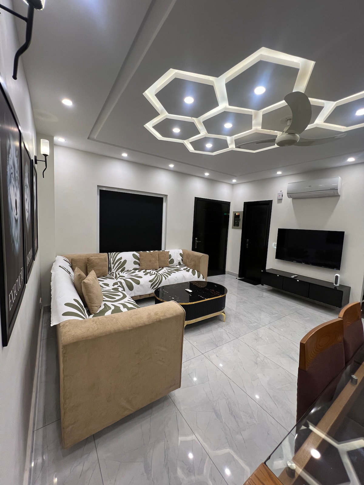 Velkommen til Twilight – en unik lejlighed med månetema i DHA Phase 6 🌙 • 1 soveværelse med hyggelig belysning og moderne design • Stilfuld stue med kunstnerisk indretning og 50” Smart LED •Fuldt udstyret køkken med komfur, mikrobølgeovn og kedel • Højhastigheds-WiFi og problemfri indtjekning uden vært 📍 Førsteklasses beliggenhed nær Raya Commercial, Dolmen Mall, Ring Road og mange caféer Din perfekte blanding af komfort og stil. Det er den bedste mulighed, uanset om du rejser i forbindelse med forretning eller fritid.