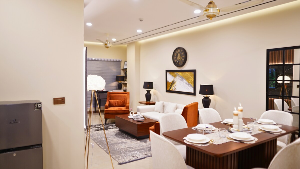 Træd ind i Flamingo Grand 3-værelseslejligheder, de mest sofistikerede og æstetisk spændende servicelejligheder i Islamabad. Nyd en sikker og stilfuld oplevelse i denne centralt beliggende bolig. Uanset om du besøger Islamabad for fornøjelsens skyld eller for at arbejde, forsikrer vi hos Flamingo dig om at give dig en 5-stjernet oplevelse. Gæster kan også nyde godt af en dedikeret gratis og sikker parkeringsplads, gratis wi-fi og opleve deres yndlings-tv-serier på 65 tommers smart led.