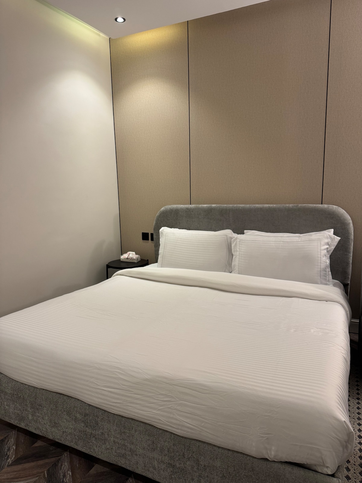 Denne fremragende og moderne bolig har sin egen stil, og den består af (en stue, et køkken, et kontor, et badeværelse og et soveværelse) Stuen er moderne og smukt indrettet, og der er også luftfrisker, luftrenser og spejl til dem, der elsker souvenirbilleder. Køkkenet er udstyret med køleskab, mikrobølgeovn og kedel, så vi kan opfylde dine grundlæggende behov. Vaskeri og toilet, og der er en pakke med pleje til gæsterne. Lejligheden er beliggende i en fremragende beliggenhed, da den er meget tæt på ringvejen og tæt på de vigtigste steder i Riyadh og dens aktiviteter, og du kan nemt nå dem.