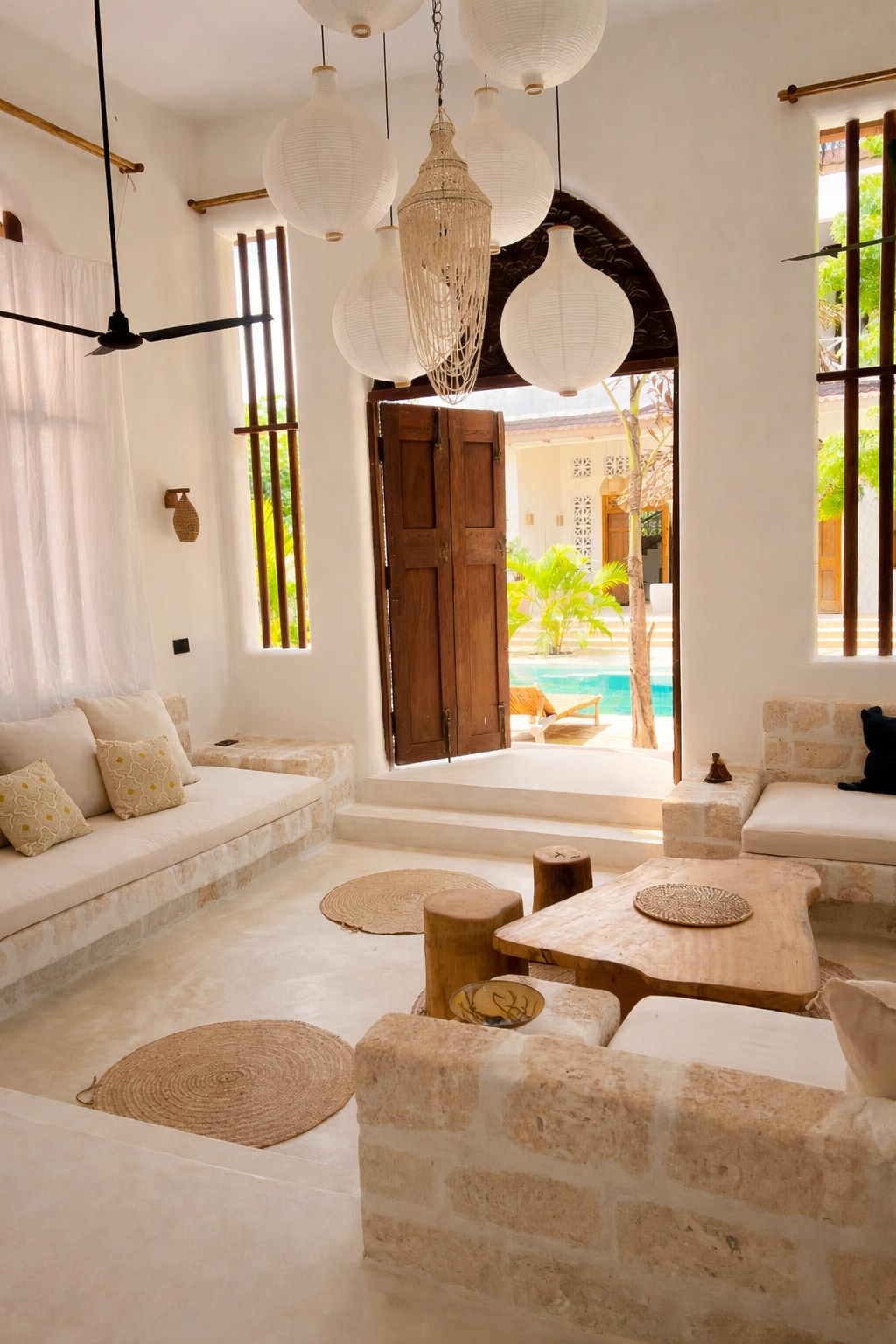 Steps away from the beach and nestled in a private & secure gated community, our gorgeous villa boasts Swahili architectural details, delicate woodwork, serene arches and a sweeping staircase with Kitengela stained-glass windows. With 5 magnificent ensuite bedrooms featuring Swahili beds, generous living areas and verandas, a lush mature garden with indigenous trees, main pool & baby pool, and a gazebo area with bar and BBQ grill, welcome to your perfect beach holiday!