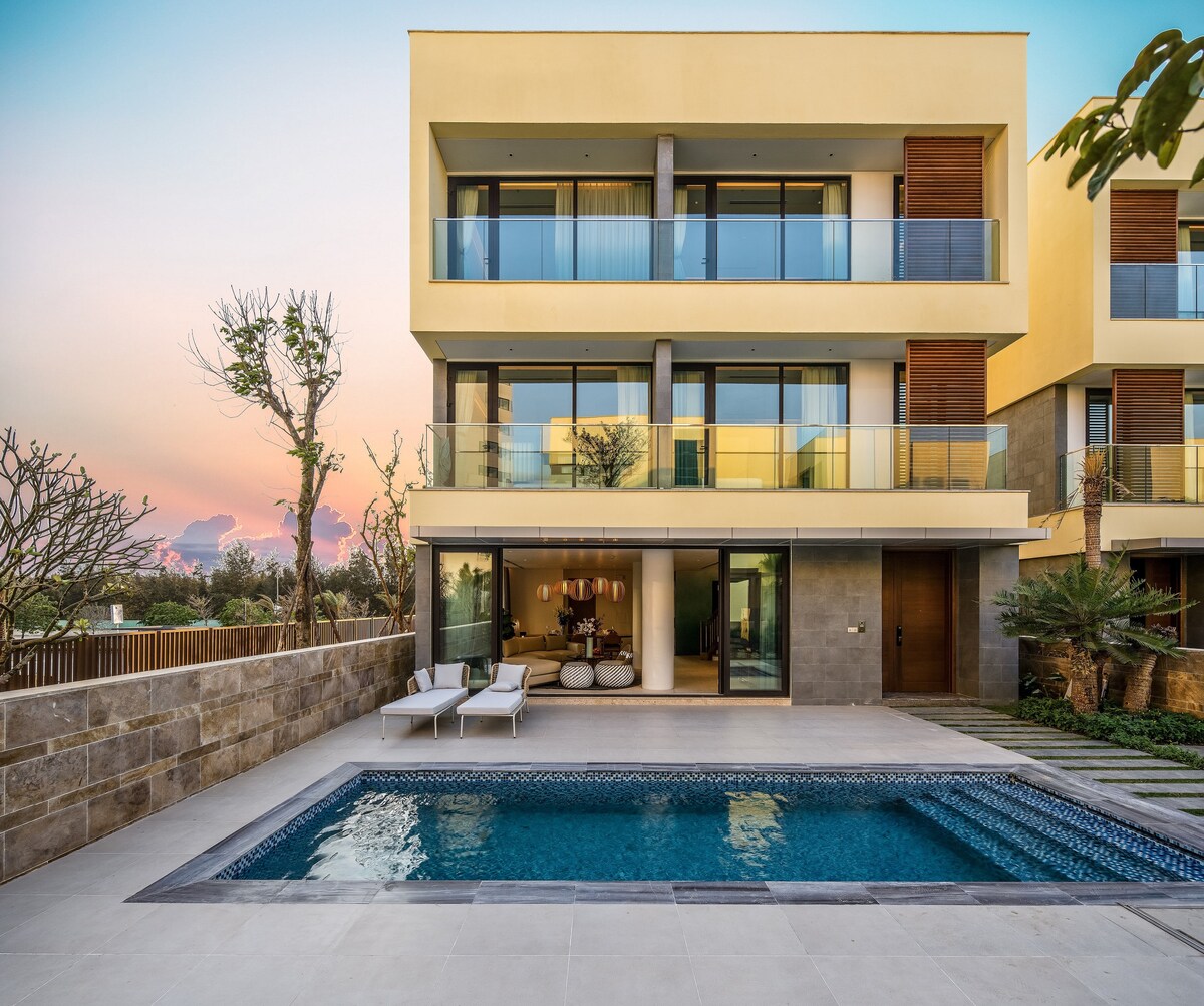 VILLA Luxury 4 bedrooms - Located on the Da Nang Hoi An axis and 2km from the beach - The villa is designed with 2 floors with a private swimming pool, 4 extremely large bedrooms (wardrobe, bathroom, ...) - Extremely cool garden on each floor, extremely chill terrace with view of the river and golf course + Outdoor swimming pool, extremely comfortable living space - with smart lock door - separate key - Villa set up a kitchen with full cooking utensils & set up an outdoor BBQ