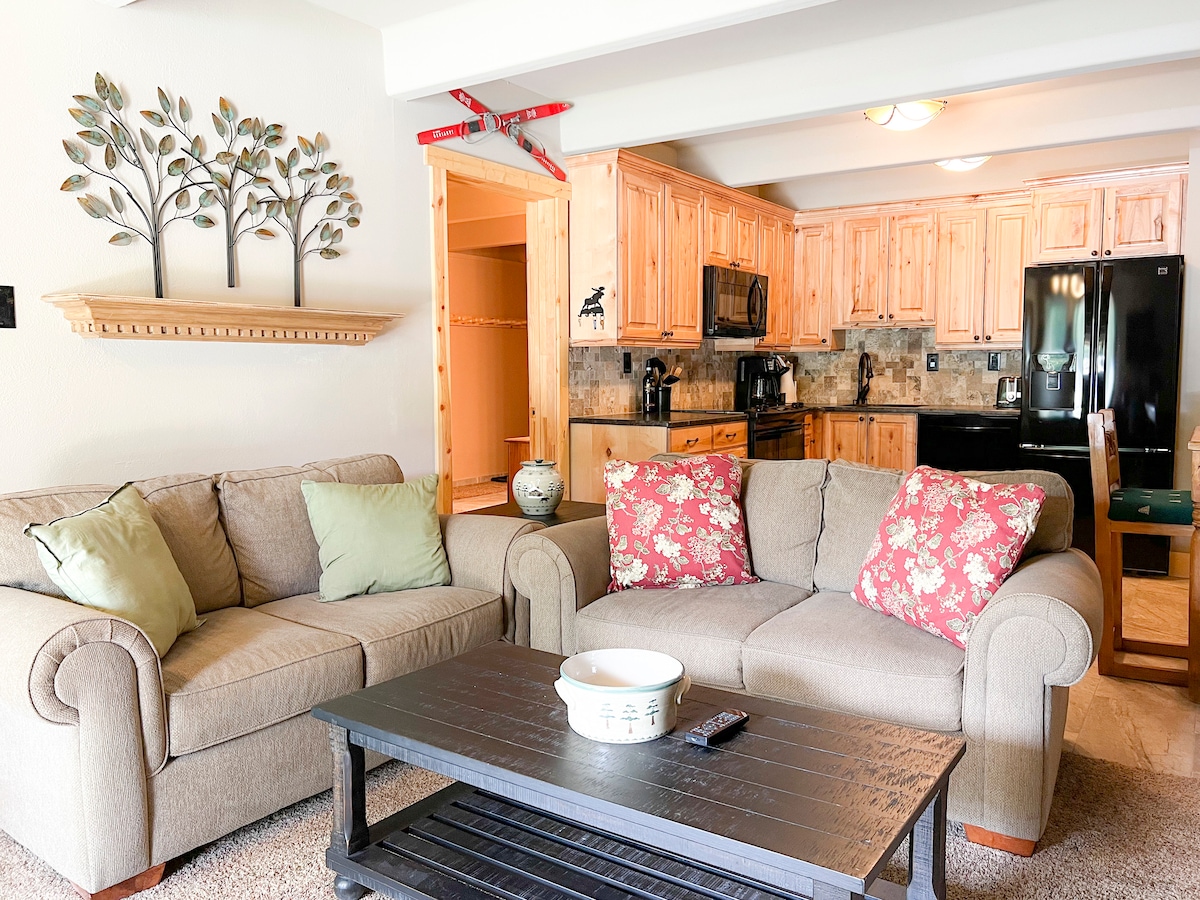 Den vanvittige udsigt over Lake Dillon og mod Ten Mile Range kan ikke overgås fra denne etværelseslejlighed på øverste etage. Den er gennemtænkt designet i en hip, søhusinspireret stil. Om sommeren kan du hænge ud på den store græsplæne med direkte adgang til søen for at fiske eller sejle. Om vinteren kan du stå på ski ud af bagdøren eller tage den korte køretur til Copper eller Keystone. Hygge ved pejsen om aftenen. Fire personer kan sove i kingsize-sengen og på sovesofaen.