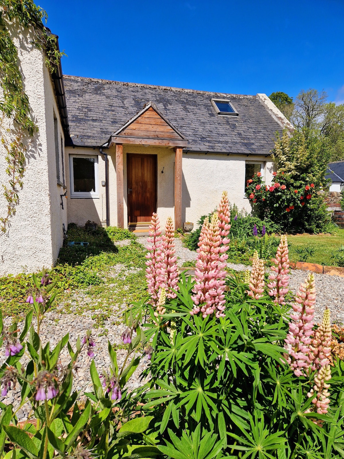 En sød og hyggelig moderniseret hytte med spabad omgivet af marker og med en smuk flod i bunden af haven. Huset er godt beliggende og har en rummelig terrasse og græsplæne, lukket have med adgang til gåture op ad floden og andre smukke lokale områder. En god base til at tage ud til vestkysten og Highlands. Vi har for nylig tilføjet et dobbeltværelse ud over vores dobbeltværelser med eget badeværelse og kingsize-seng. Vi er glade for nu at kunne tilbyde gæster et spabad til 5 personer. STL: HI-20338-F