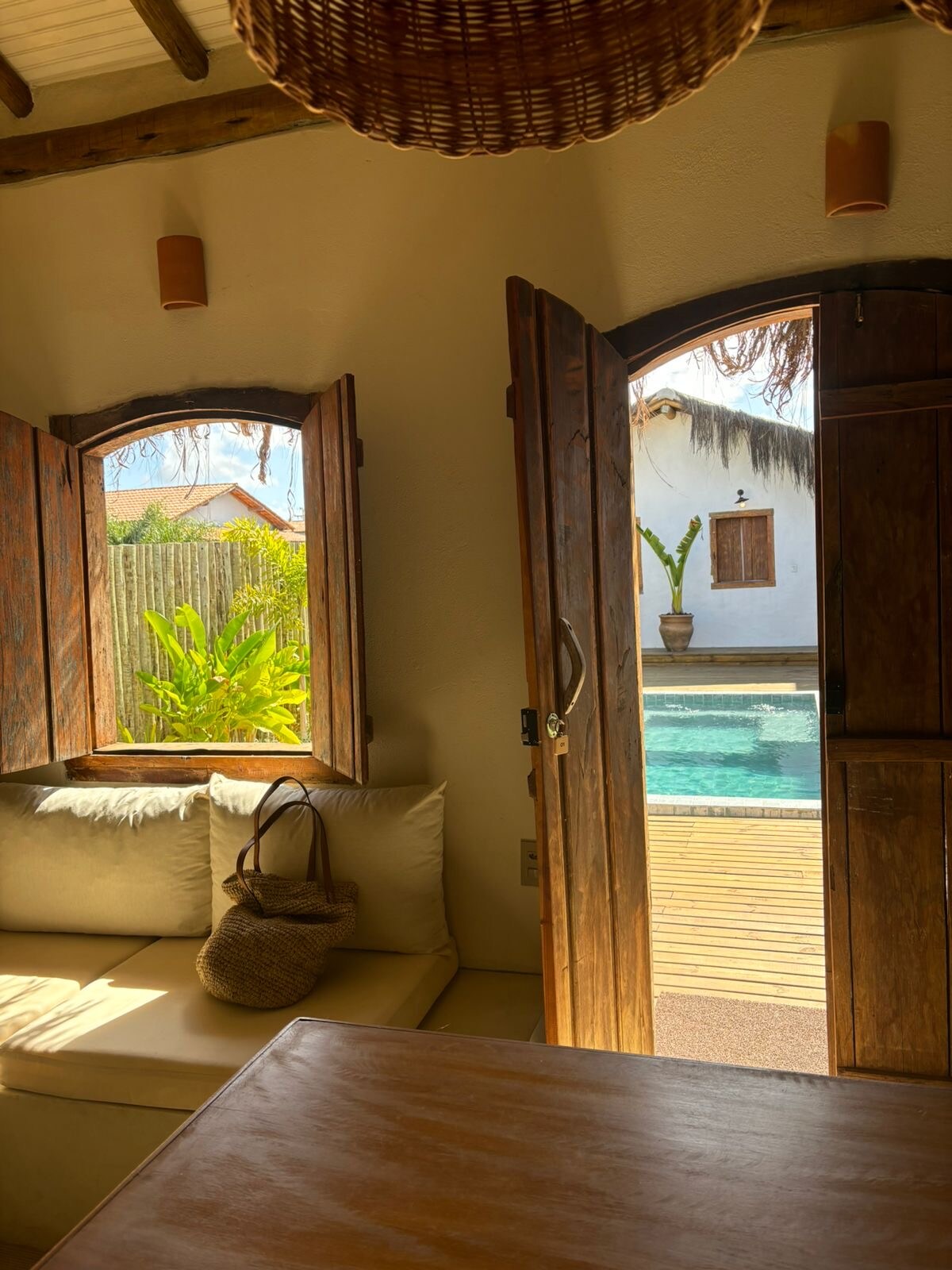 Arraia Bungalow er designet i form af en sekskant og kombinerer en fiskerlandsbys rustikke charme med luksus. Med finishen i Taipa, ler, der minder om bygningerne fra den ældste landsby i Brasilien, søger stedet at sætte farten ned og omfavne sine gæster, så du føler den fred og lethed, som landsbyen har. Boligen ligger i vores gæstehus, som har en skovklædt gård og et team, der er klar til at opfylde dine behov.