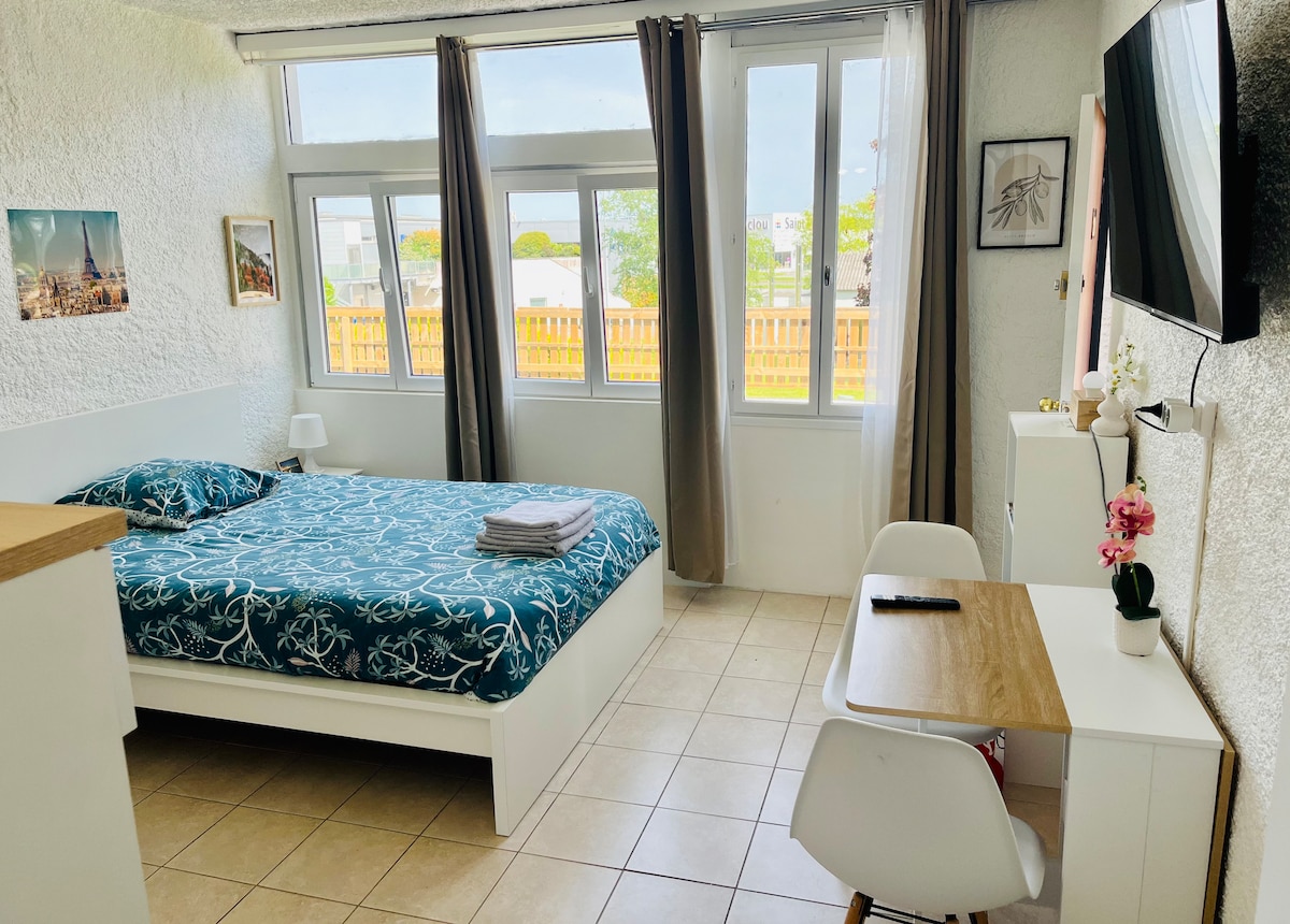 Tag en kort pause, og slap af i denne udstyrede studiolejlighed. Beliggende i stueetagen i en nyrenoveret bygning med fælles privat gårdhave - Trapper og håndklæder ER IKKE INKLUDERET i muligheden for ekstra 10 € per ophold - Nøgleboks (fleksible åbningstider) Tæt på Chateau de Dissay, boulangerie, tabac, 6 minutter fra Lac de St Cyr, 12 minutter fra futuroscope, 1 time og 10 minutter fra Châteaux de la Loire, 1h40 zoo de Beauval