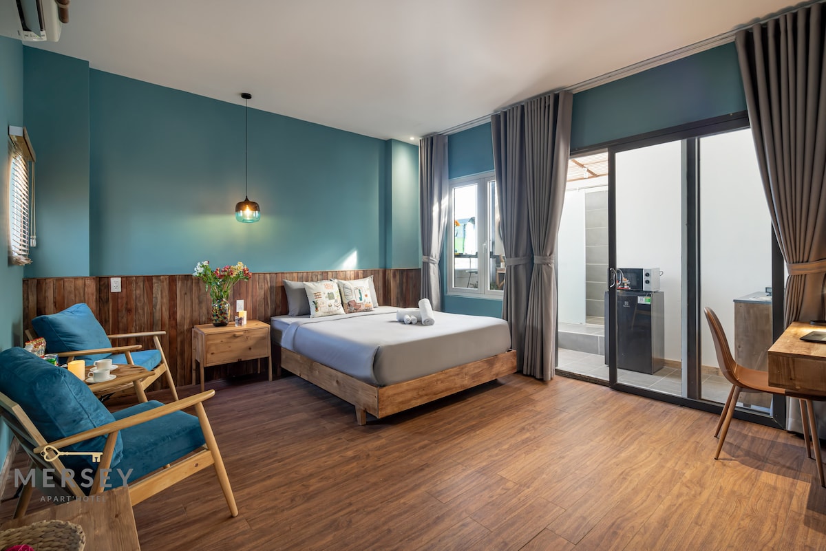 - En stilfuld og unik lejlighed i Mersey Central Saigon Apart'Hotel - medlem af HoLo & Mersey Hospitality. - STØRRE GRUPPE kan booke andre værelser til at bo her sammen. - Tæt på Ben Thanh Market, Nguyen Hue, Pham Ngu Lao og Bui Vien-området - Nytog stilfuldt designet studie - Omgivet af alle turistattraktioner - Privat køkken, privat badeværelse og privat balkon - Rygning forbudt - Kæledyr er ikke tilladt - Depositum og forbrugsregninger for længerevarende ophold, der skal informeres på tidspunktet for forespørgslen