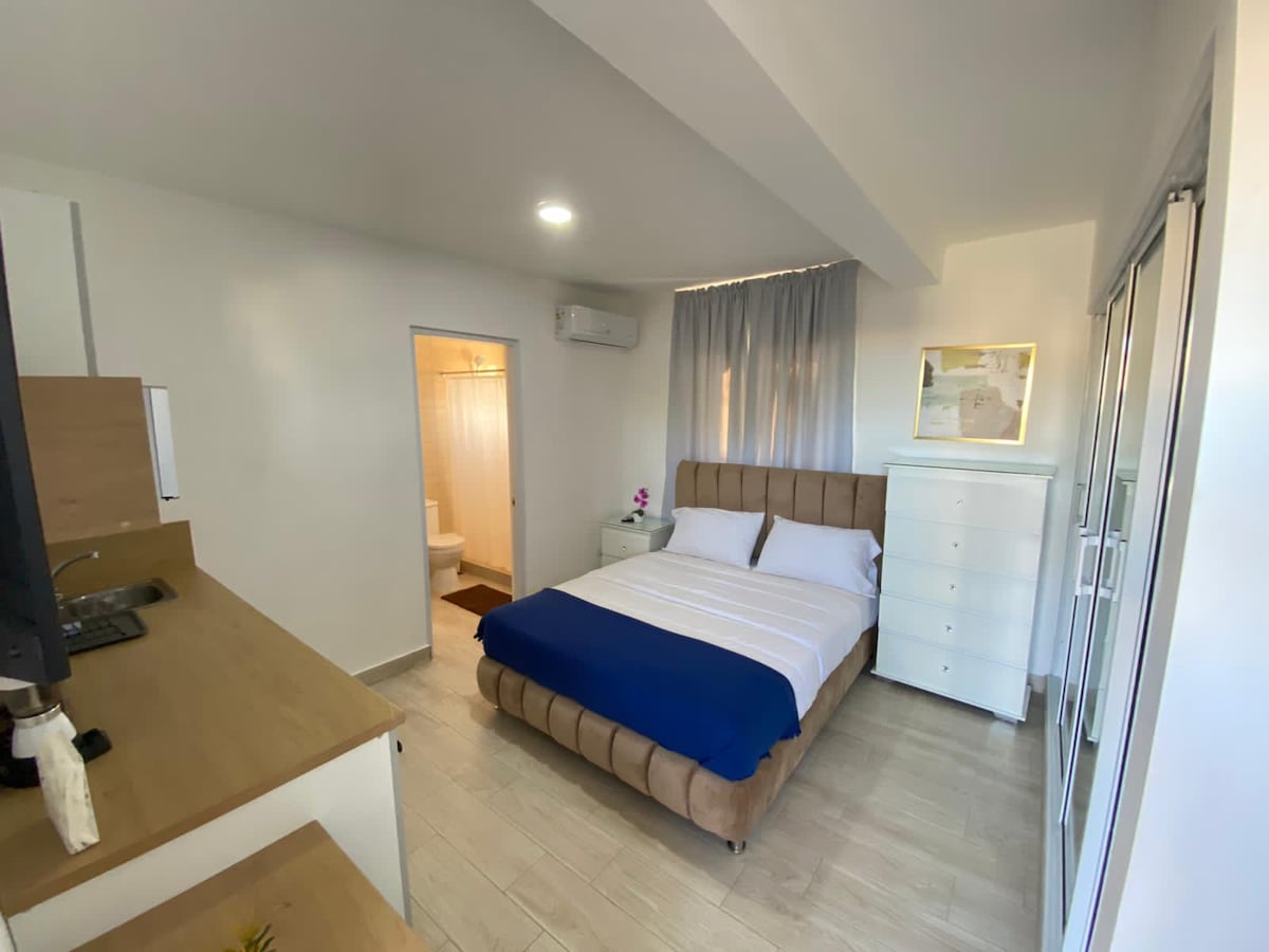 Nyd den nemme adgang til populære butikker og restauranter fra dette charmerende lille hotel til Calle El Conde, columbus park, ruiner, serveral musea, Sambil og Malecon (kystgade). Værelserne har alle wi-fi, aircondition , tv, ventilator og andre forsyninger. det fælles køkken tilbyder dig alle forsyninger til at tilberede dine tallerkener. Terrassen tilbyder dig en afslappet atmosfære med grill, komfortable stole og rolige omgivelser