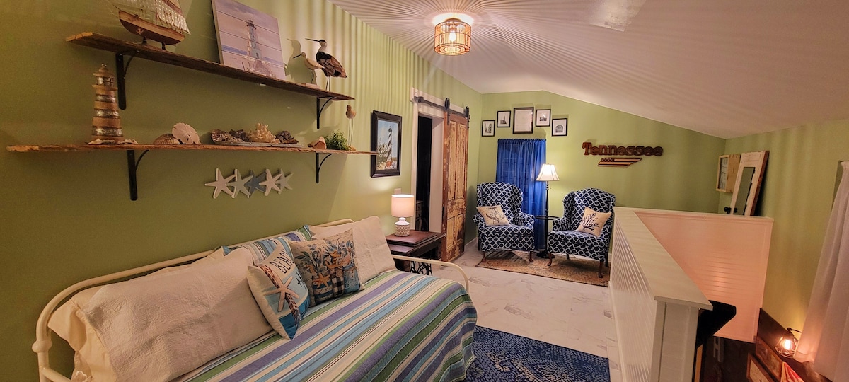 Cedar Loft er et smukt rum på landet beliggende på 40 hektar med en fantastisk udsigt. Bekvemt tæt på I-40 med en køretid på 35 minutter til Nashville lufthavn eller 45 minutter til downtown Nashville. Dette helt nye loft over garagen har egen indgang. Køkkenet tilbyder granitborde, køleskab, mikrobølgeovn, ovn og opvaskemaskine. Til tøjvask er der en vaskemaskine/tørretumbler. Vi tilbyder wi-fi, har god mobilmodtagelse og tilbyder et udvalg af dvd'er og brætspil.