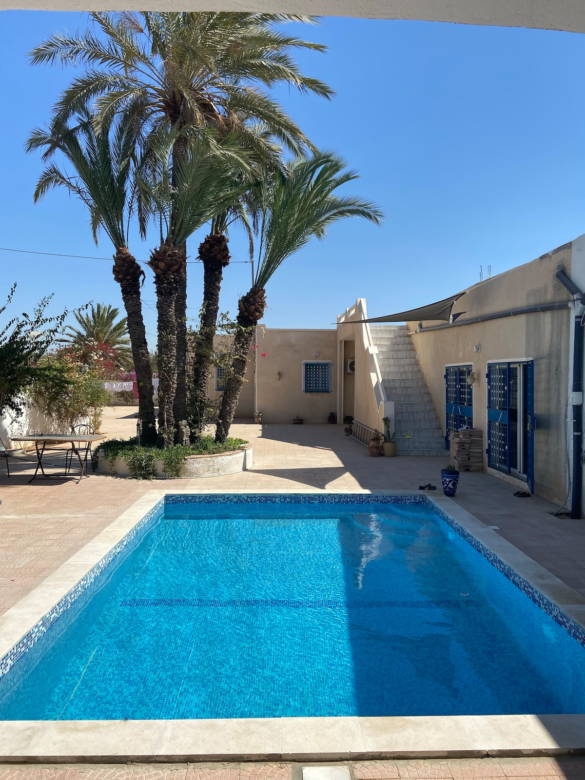 Charmante maison avec piscine et sans vis à vis. Elle une architecture typique de Djerba. Elle offre toutes les commodités pour un séjour confortable et paisible. Ce composé de deux studios et un salon et un grand piscine avec un coin cuisine et douche extérieure. Pour trouver la localisation exacte de la maison il faut maitre sur Google "houche bounouh djerba " , vous trouverez la position exacte de la maison