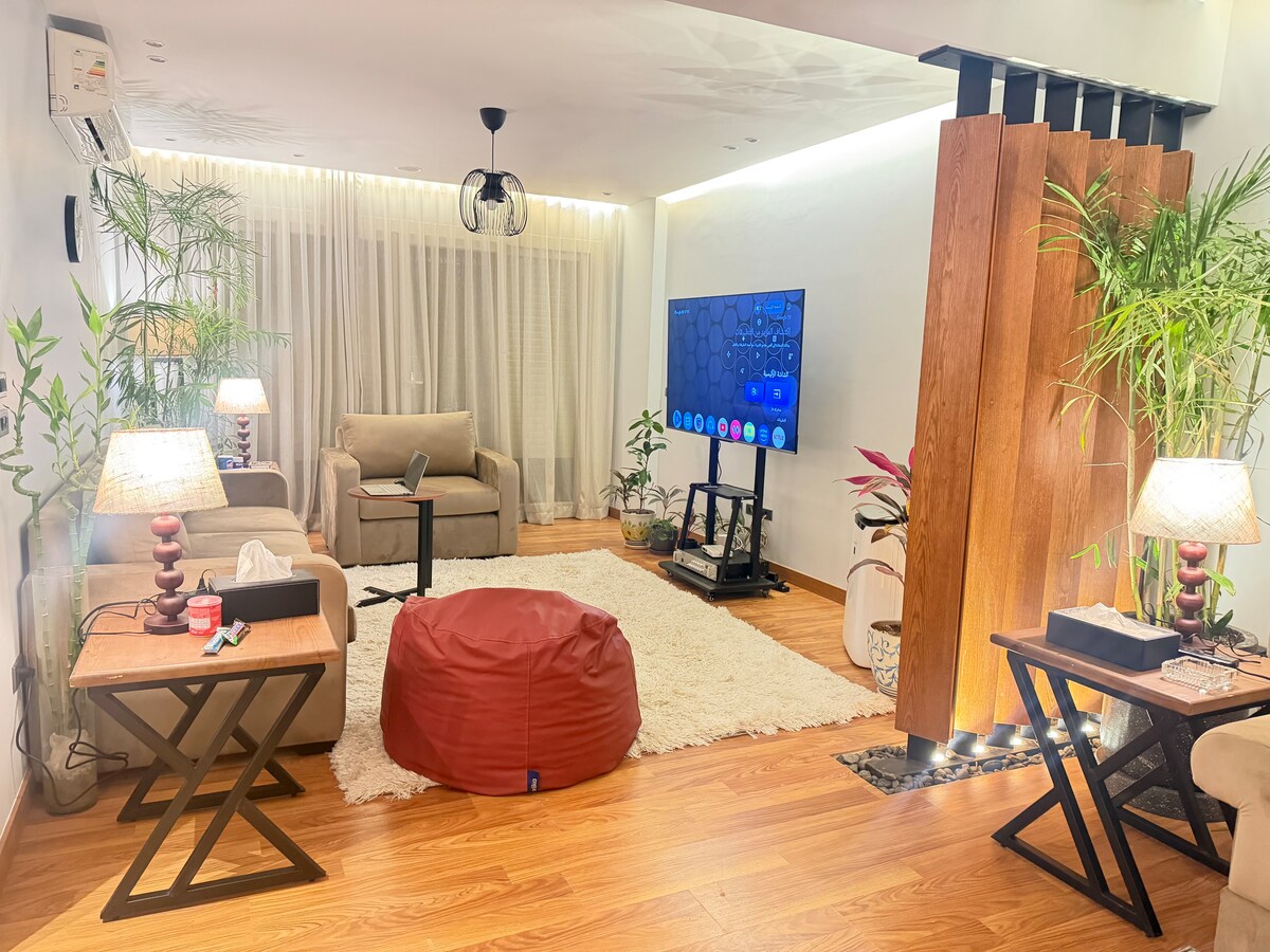 - Denne unikke bolig har en stil/ultramodern serviceret lejlighed. - Ingen blandede køn ulovligt. – Par, der har indgået et sædvanligt ægteskab, er OK – Rampe i bygningens indgang til kørestol og bagage. - Seoudi Supermarket; Alle slags førsteklasses ost (blød og hård ost) fra Seoudi Supermarket (ved siden af lejlighedens bygning) - Tøjvask, frisør, barber, moské , chirch . – BeIN 'Ultimate'-pakke/Shahid VIP SSC
