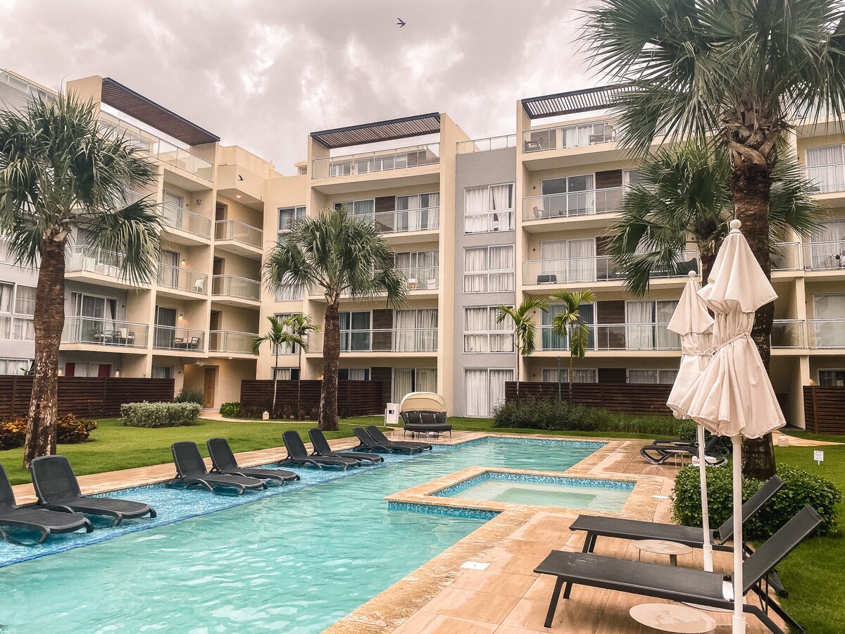 Velkommen til vores eksklusive lejlighed i Den Dominikanske Republik, kun 5-6 minutter fra den fantastiske strand. Beliggende i et roligt område omgivet af pools og frodig vegetation. Interiøret er indrettet med elegance og stil og giver et uforglemmeligt ophold. Vi ser frem til at være vært for dig, så du kan nyde unikke øjeblikke med hvile i vores charmerende sted.