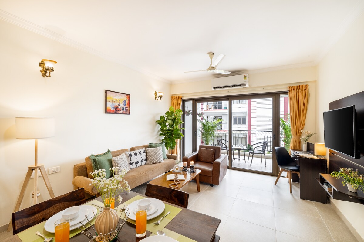 Noah: 1BHK Fieldview | Fitnessrum | Pool | 1 km Baga Beach