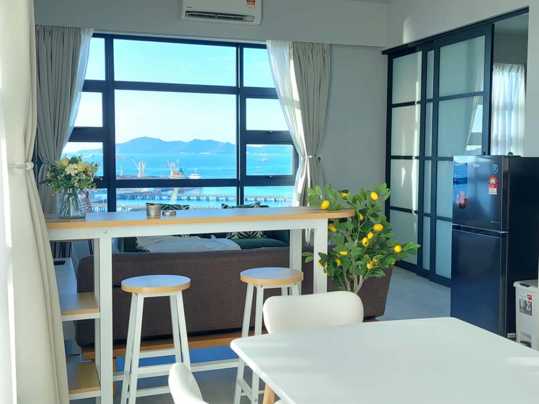 Ny lejlighed beliggende i CBD og ved havbugten. Nyd havudsigten omgivet af øer fra vores enhed på en af de øverste etager. Gåafstand til molen, hvorfra du nemt kan hoppe fra ø til ø. Det internationale kongrescenter, Jesselton indkøbscenter (toldfrit) og Suria Sabah indkøbscenter ligger i nærheden. Vores Homesuite er ren med hyppig desinficering og luftrenser. Familievenlig og også velegnet til par og forretningsrejser.
