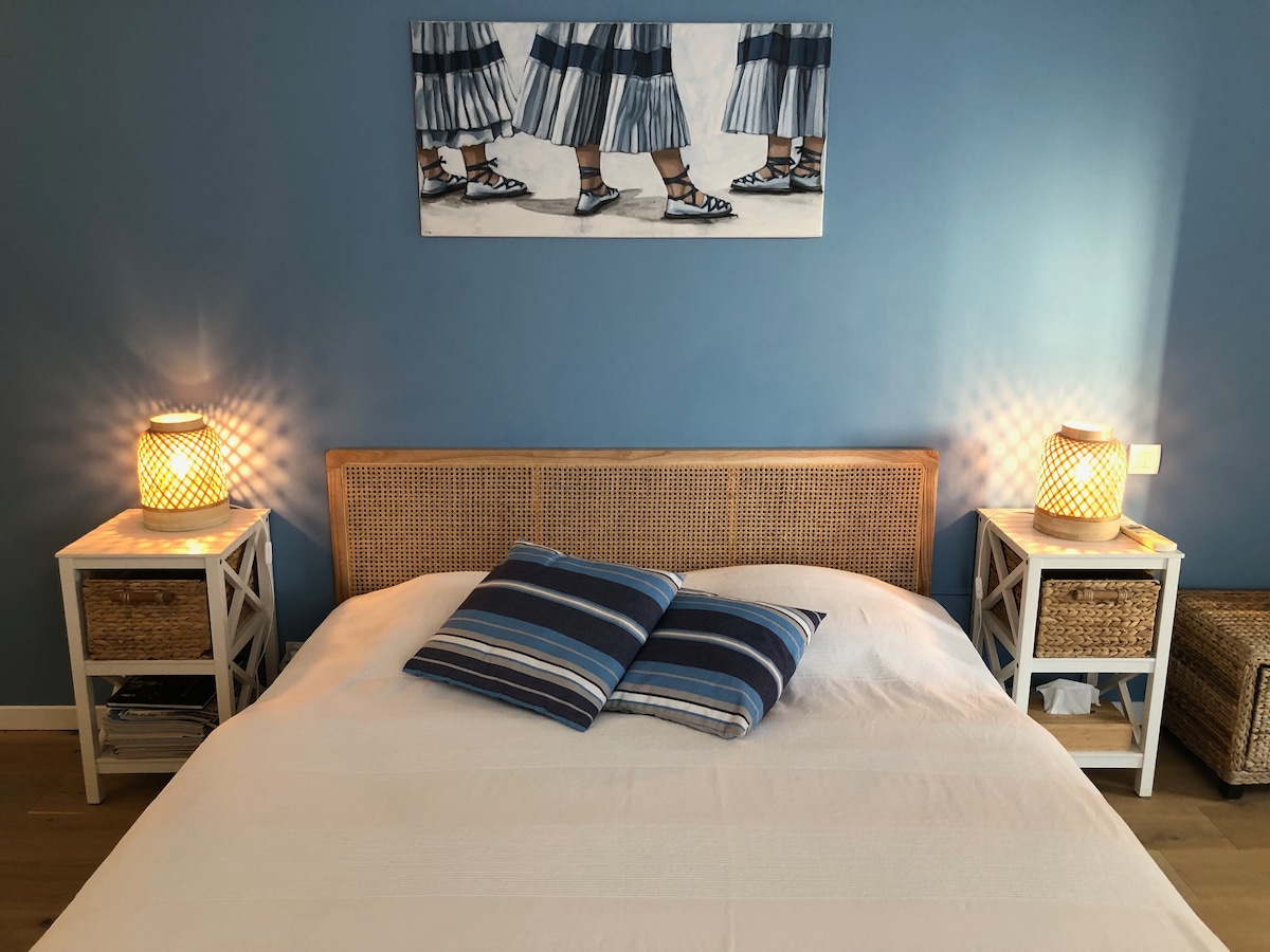 Gæsteværelse: Master-suite til 4 personer, loft på 27m2, mobil klimaanlæg, morgenmad inkluderet. 1 seng: 180 kingsize 1 seng: 140 1 barneseng efter anmodning . Badeværelse med bruser, toilet + køleskab + mikrobølgeovn + pengeskab med kode. Bemærk⚠️ , der er ikke noget køkken. Denne suite Kan rumme 2, 3 og 4 personer. Fra 3. person: 20 € ekstra/pers. (gratis for babyer op til 2 år). 5 km fra Bayonne station. 16 km fra lufthavn Biarritz.Espagne/30km 400 m fra Vélodyssée langs Adour.