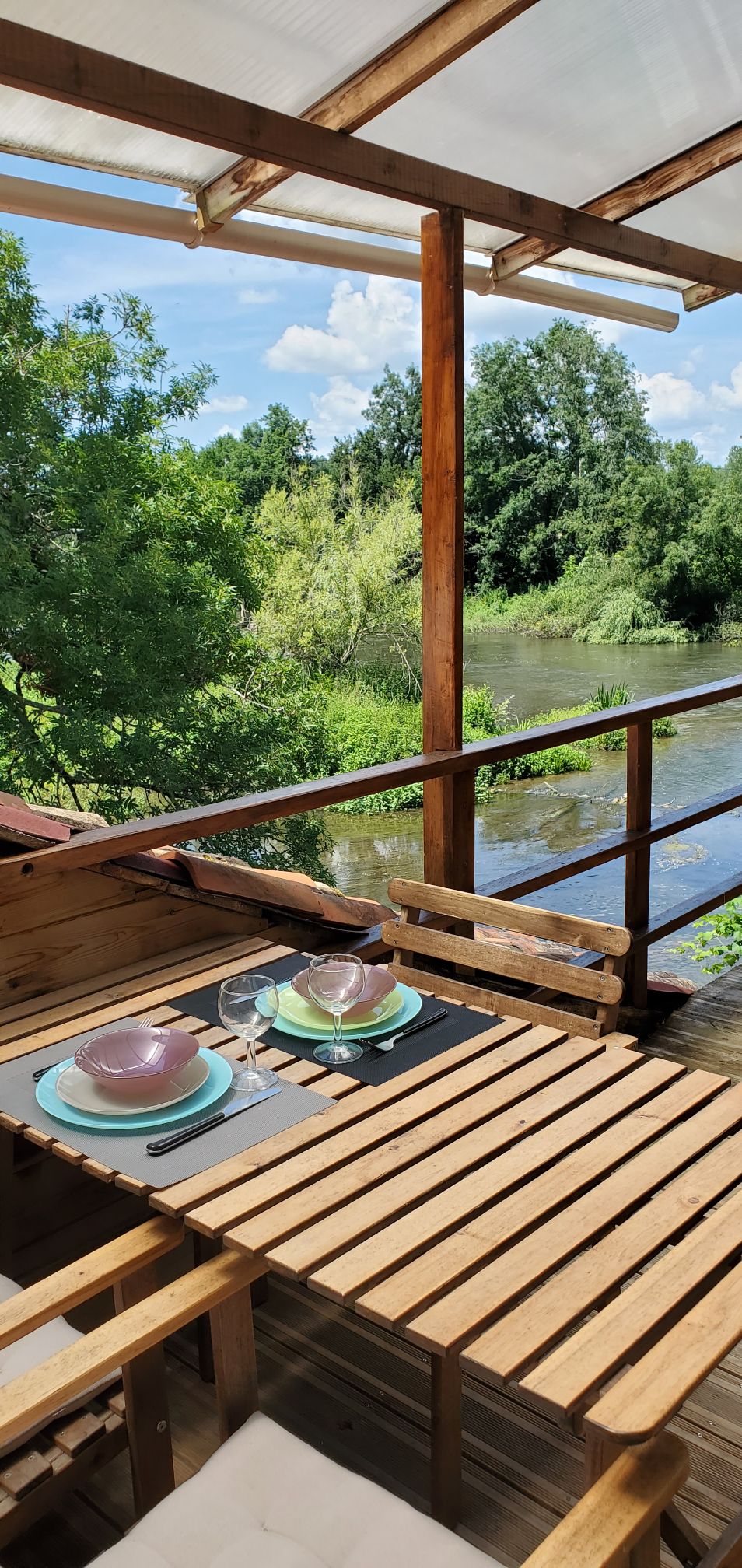 Vores hytte ligger i en mølle ved den smukke flod La Dronne. Det er en meget rummelig lejlighed (55 M2), der er totalrenoveret. Et værelse med udsigt over floden og en smuk terrasse med udsigt over den. Direkte adgang til floden for svømning eller kanosejlads, som vi stiller til din rådighed. Vær opmærksom på, at trappen, der fører til hytten, er ret smal og stejl og ikke egnet til handicappede samt nogle personer med nedsat mobilitet