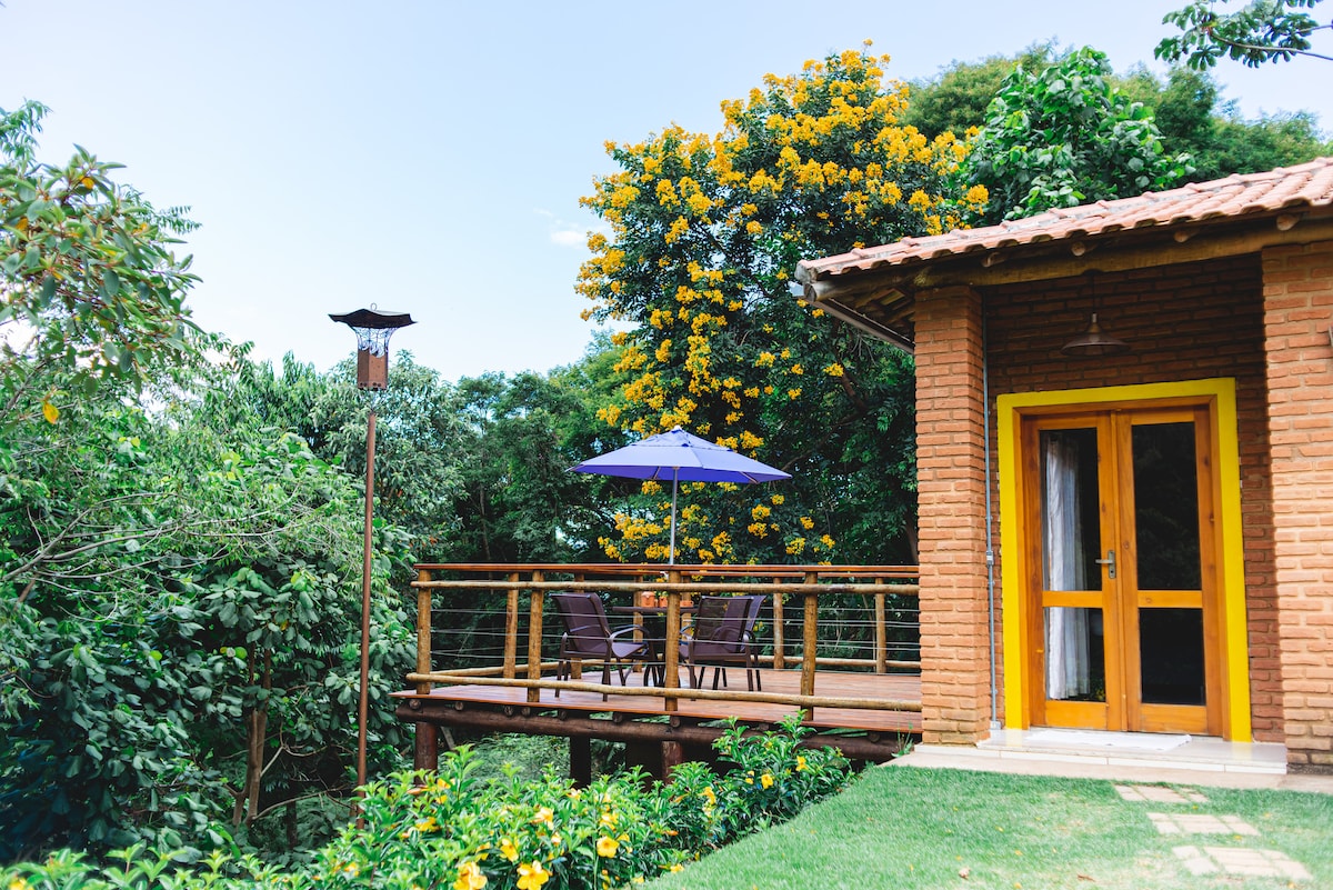 Chalé Araçari - Vandfald i baghaven!