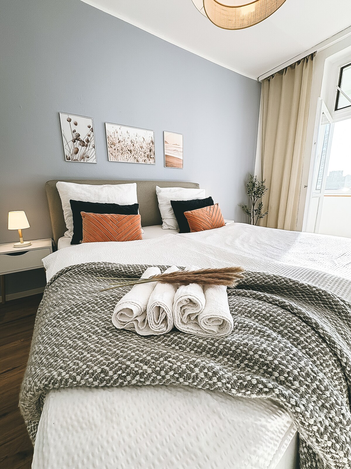Whether you're traveling for business, tourism, or personal reasons, this apartment is perfect for you if you're looking for a cozy apartment. The height-adjustable desk makes it especially ideal for work. With a 200 Mbit/s connection, you can easily surf and stream. Free public parking is available at the house. The apartment features a comfortable box spring bed (180 cm), two single box spring beds (90 cm), a fully equipped kitchen, and a living room with Netflix.