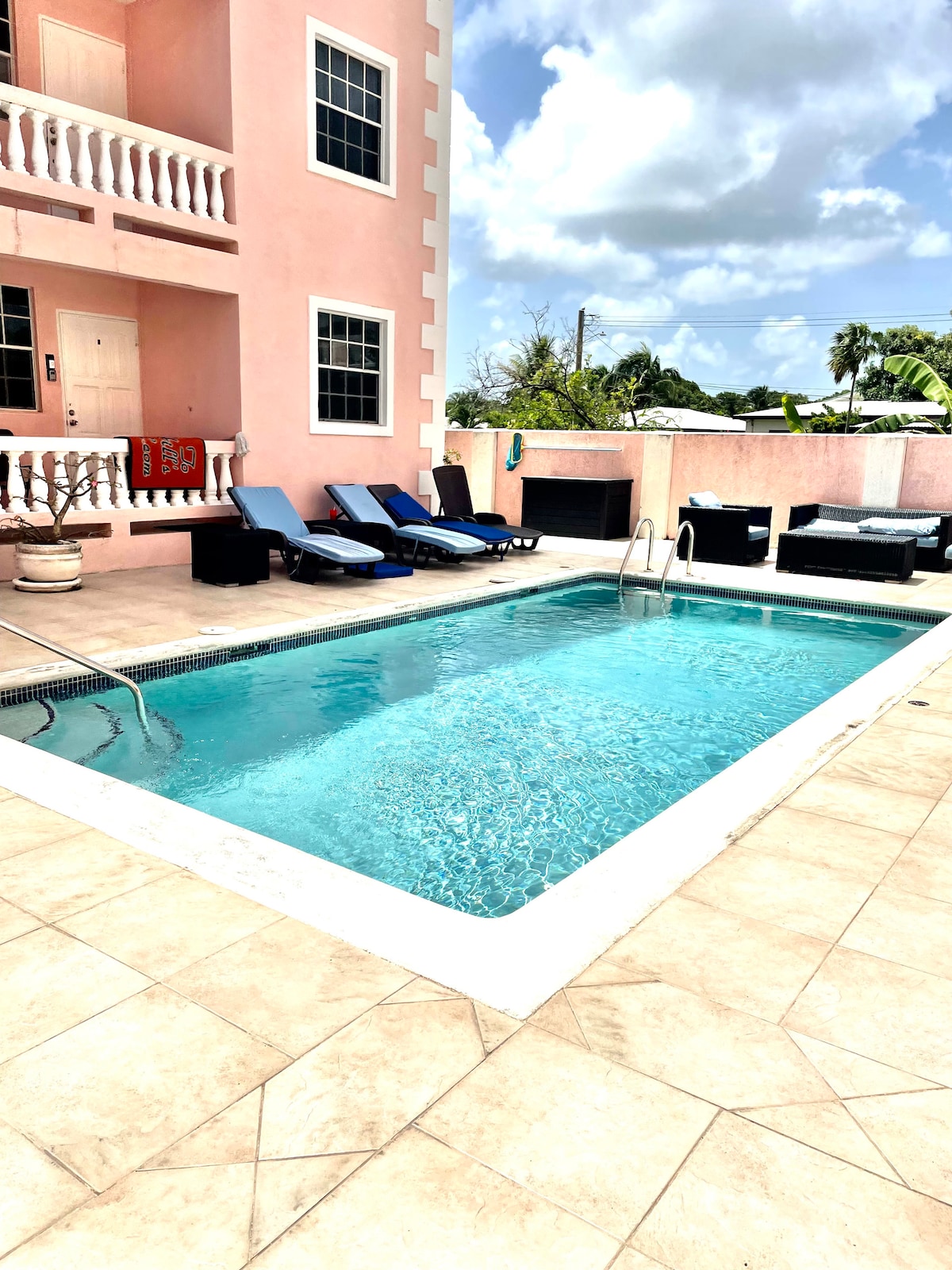 Sapphire Beach Condo-114 er en familievenlig, fantastisk duplexlejlighed beliggende på Dover Beach med direkte adgang til poolen og stranden. Tæt på DOVER SUPERMARKET (2 minutter gang) og den berømte ST. LAWRENCE GAP (5 minutter til fods), som kan prale af over 15 restauranter. Lejligheden har to soveværelser og to badeværelser, et på hvert niveau, og er fuldt møbleret med et moderne køkken (herunder airfryer), tv, aircondition, trådløs oplader, fitnessrum, overdækket parkeringsplads og 24-timers sikkerhed. Du vil nyde opholdet 100 %.