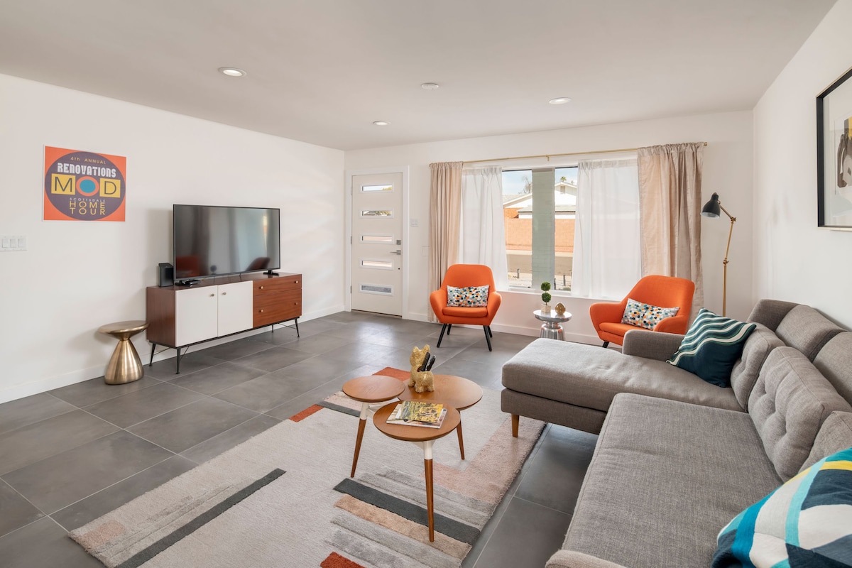 Velkommen til "THE DON." EN NY moderne SHOWSTOPPER fra midten af århundredet. Dette nyrenoverede mesterværk fra midten af århundredet ligger i den gamle bydel Scottsdale og vil ikke skuffe! Nyd de udendørs faciliteter, som omfatter opvarmet 25'x12' pool, putting green og grill. Den åbne planløsning med synlige bjælker, 75" tv og et fuldt udstyret køkken vil gøre dit ophold intet mindre end spektakulært. Respekter husreglerne og naboerne ved at overholde vores strenge politik om INGEN FESTER.