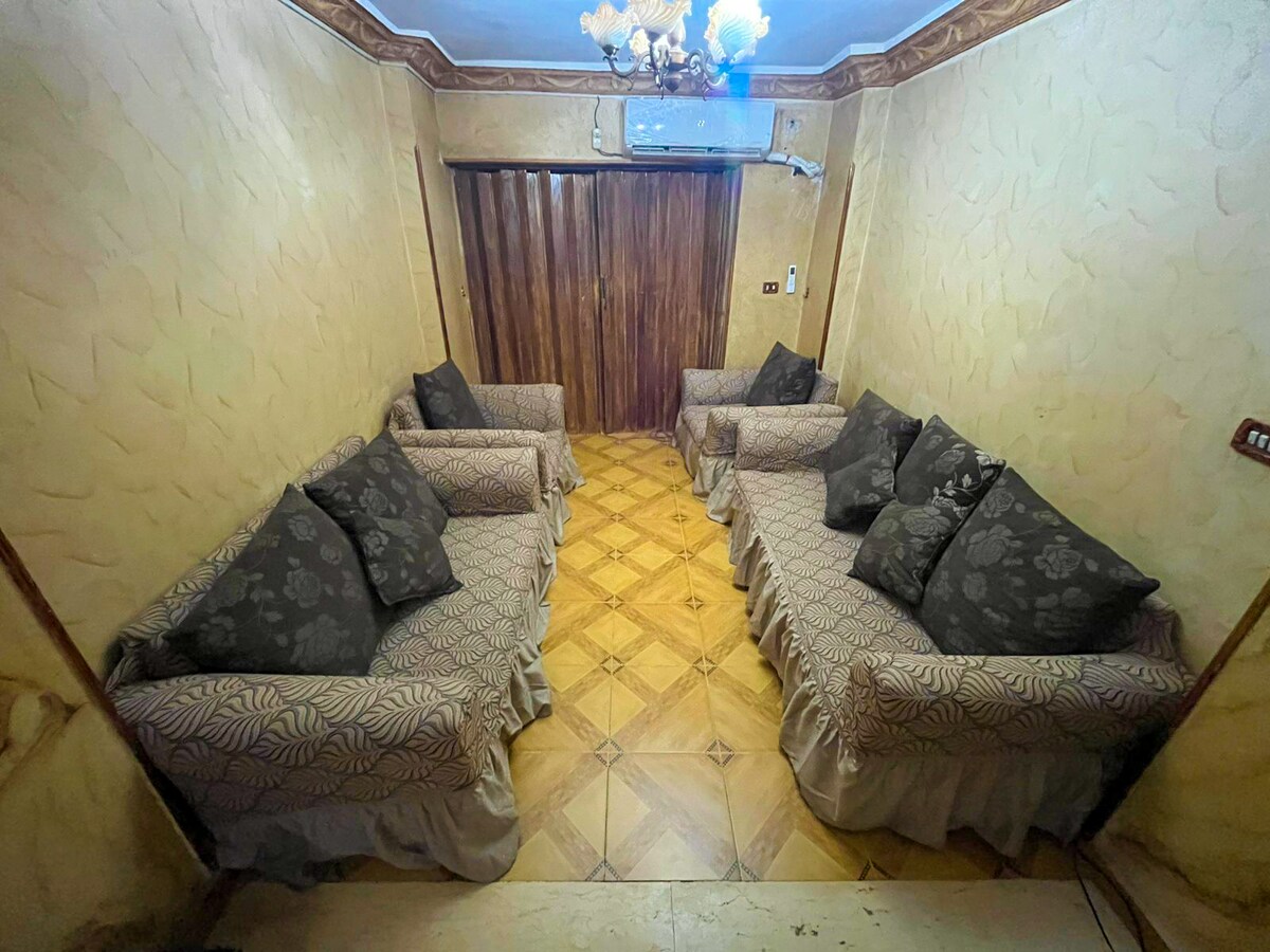 En godt møbleret lejlighed ti minutter fra Cairo International Airport med en moderne indretning, som har alle nødvendige faciliteter. Lejligheden ligger på tredje sal, som kan nås via elevatoren. Som gæst har du en privat parkeringsplads i bygningens garage. Lejlighedsfaciliteterne er: * Fuldt udstyret køkken * Spisestue og stue *2 soveværelser og 2 badeværelser *A/C i alle rum * Der er sengetøj og håndklæder.