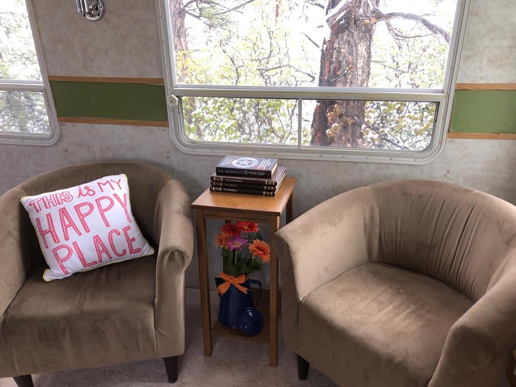 TRAILER: En ferietrailer fra 1970'erne, der er blevet fuldstændig renset og ombygget. Et minimalistisk design med queensize-seng, 1 dobbeltseng, minikøleskab, aircondition og varme. 200 SQ FT. - queensize-seng + opvarmet madraspude - enkeltdag/seng - håndklæder - dyne + puder - A/C (vinduesenhed) + VARME -Fan - WIFI - Opvarmede badeværelser med indendørs brusere -FULDT køkken og vaskeri (begge FÆLLES) Denne trailer er rolig og forenklet. Et godt sted at slappe af og klare hovedet.
