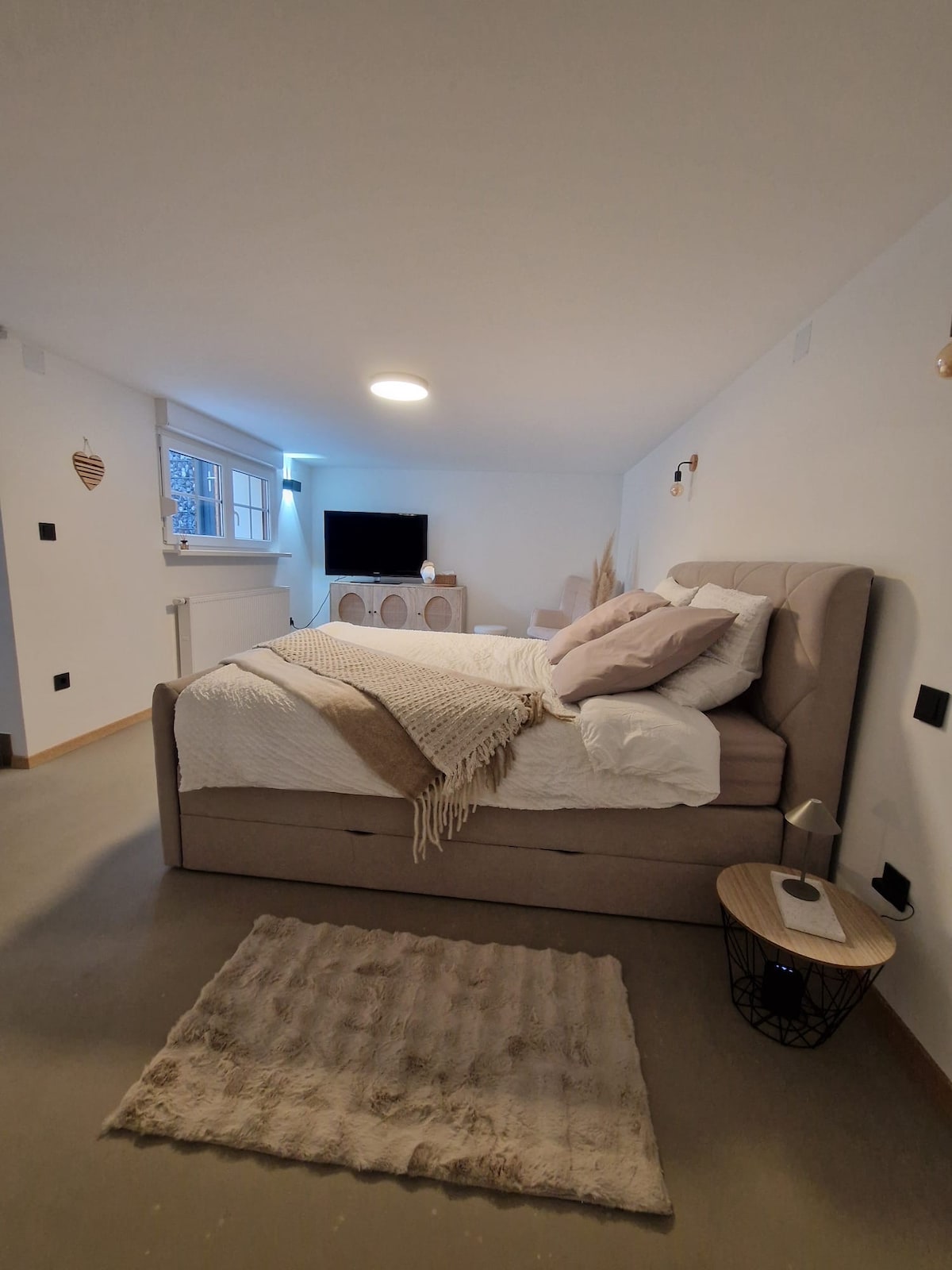Vores stilfulde og afslappet indrettede oase med penthouse-flair, der er perfekt beliggende i forhold til trafik og fritid og udstyret med alle bekvemmeligheder, er en hyldest til den varmeste region i Tyskland. Så snart du træder ind i "The KAlifornia", dufter alt af rejselyst og hygge. Slap af udenfor på den store tagterrasse ved siden af palmerne i din hængekøje og lounge, slap af indenfor på din hyggelige seng eller med en god bog og den bedste kaffe, mokka eller vin.