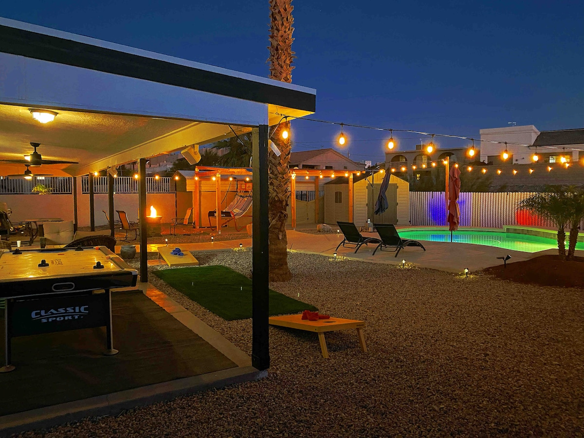 ⭐️ 3000 kvadratfod med luksuriøst design og indretning ⭐️ Minutter til Riviera Marina og Downtown ⭐️ Kingsize-senge ⭐️ Hængekøje, spil og putting green ⭐️ Golfbane og bjergudsigt ⭐️ Beliggende på anden green Vores fuldt renoverede indendørs-udendørs feriebolig er en ægte oplevelse i Lake Havasu City The Clubhouse er næsten 3000 kvadratmeter stort og har plads til 14 gæster. Det ligner et 5-stjernet feriested og føles som et hjem, der er skabt med kærlighed. Faciliteterne omfatter en pool, et boblebad, en hængekøje, en putting green og et bålsted.