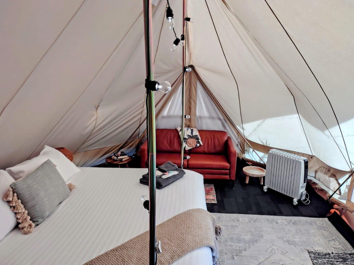 Et luksuriøst bushbad, lejrbål og et stort privat klokketelt er alt sammen dit på dette uforglemmelige bondegårdsophold i hjertet af Margaret Rivers vinområde. Slap af i dit hyggelige, luksuriøst indrettede 6 m telt (med strøm), privat udendørs brusebad, tekøkken, dyreliv og stier. Designer sengetøj, queensize seng og komfortabel Zeek hybridmadras, elektrisk tæppe, Bluetooth-højttaler, tekøkken, bibliotek, håndværksprodukter - endda uldsokker. Vi bestræber os på at overgå dine højeste forventninger til komfort.