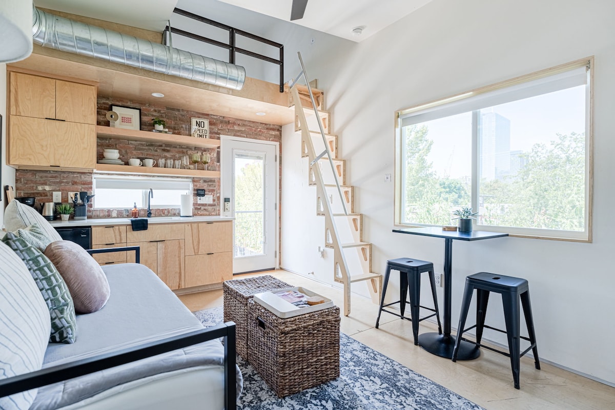 Oplev vores smarte 240 kvadratmeter store loftslejlighed i baghaven med alt, hvad du har brug for til 2-3 gæster! Nyd modernitet, effektivitet og 8 Gig Fiber internet, ideel til problemfrit fjernarbejde. Ingen rengøringsgebyrer eller hotelafgifter, bare ren komfort og en ideel beliggenhed! Super praktisk til lokale attraktioner, som alle ligger omkring en halv mil væk! Franklin Barbecue, Rainey Street bardistrikt, berømte 6th Street restauranter/barer, Scoot Inn og Austin Convention Center. Whole Foods og Target ligger 3 minutters gang væk!