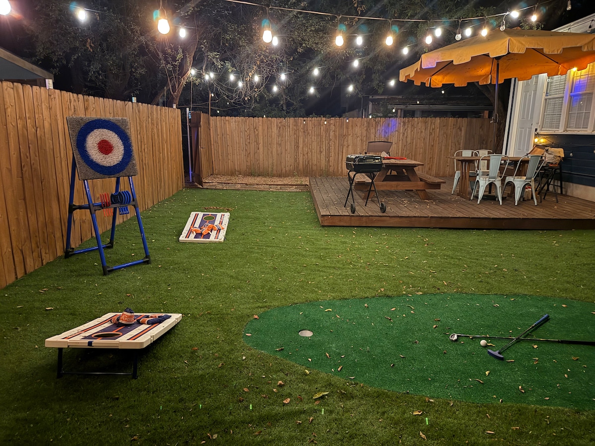 Land in the heart of Austin's creative, trendy, and eclectic east side. My carefully curated guidebook to the area will point you to the adventure you seek in Austin. I live here, and my recommendations for BBQ, honky tonks, and tacos are not the obvious ones, but they are the best ones. Sit on the front porch, watch the day pass by, stretch out on the comfortable king-sized bed, or play vintage Pac-Man. The backyard is private, and there is an ax-throwing game, a cornhole game, and a grill