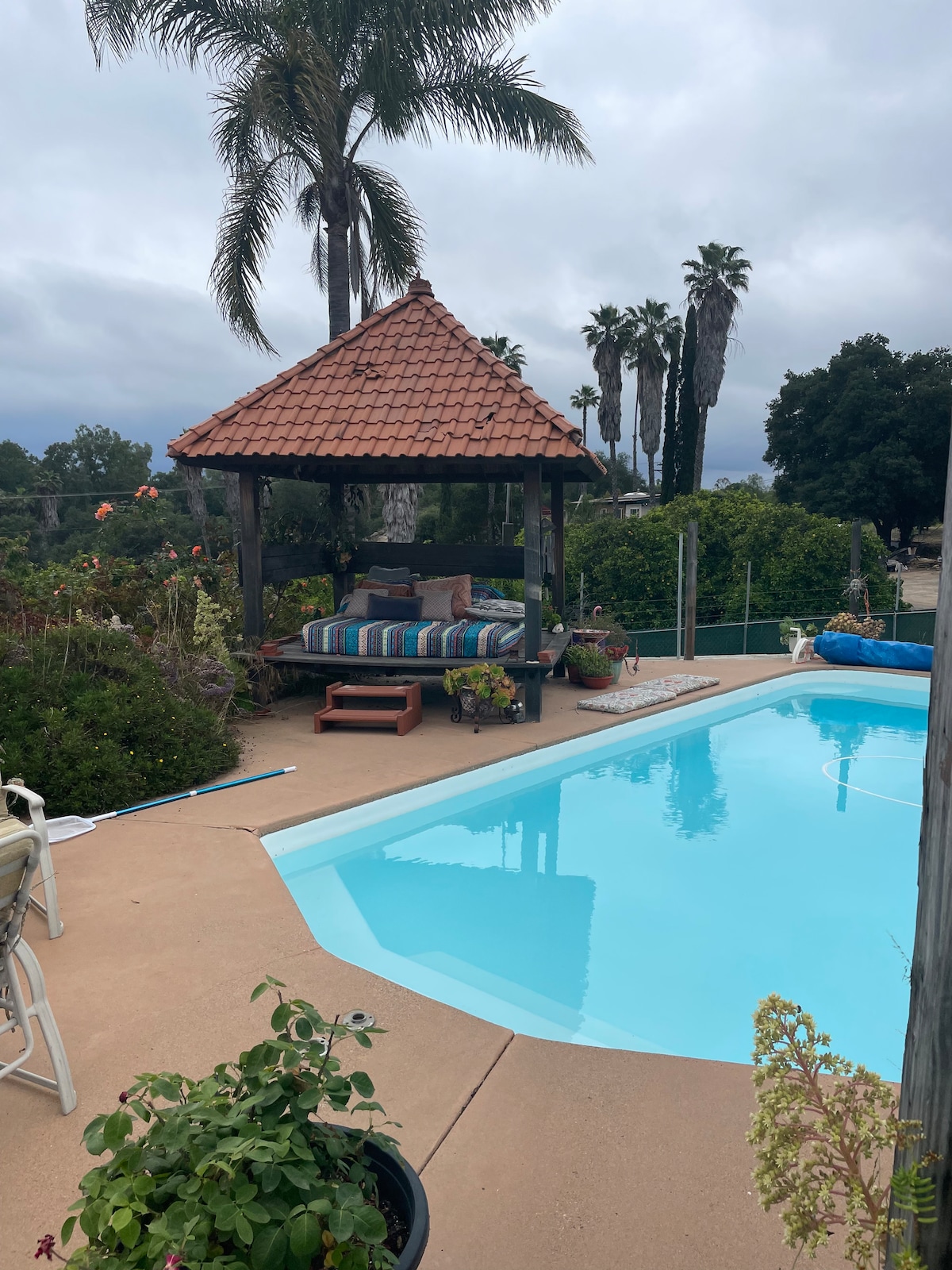 Aloha! Hvis du leder efter en afslappende og blød stemning, inviterer vi dig til at overnatte i vores hyggelige 1948 16ft Travelo rejse trailer, "The Pineapple Express" Nyd din private pool og spabad, se en smuk San Diego solnedgang fra terrassen på bjergsiden eller træk en skammel op i Tiki Bar til din morgenkaffe. Vi har nu en udendørs gasgrill, varmtvandskande, mikrobølgeovn, minikøleskab og brugsvask til madlavning! Hablamos español Døvevenlig🏳️🌈. Alycen ASL flydende.