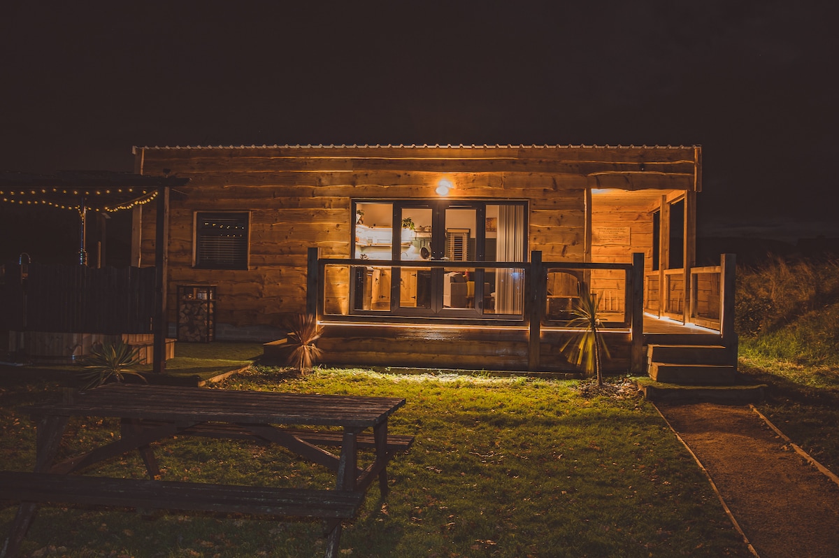 Tag til "Midge", en afsondret nordisk hytte for to på landet i Devon. Dette hyggelige skjul på en 4 hektar stor ejendom med skove og enge har et brændeopvarmet spabad under stjernerne, en knitrende brændeovn og panoramaudsigt over Exmoor-landskabet. Kom tættere på naturen og hinanden – ingen tv, kun solnedgange, stjernelys og fuglesang. Luksuslinned, økologiske toiletartikler og en privat terrasse sikrer et romantisk ophold, du sent vil glemme (og ja, din velopdragne hund er velkommen).