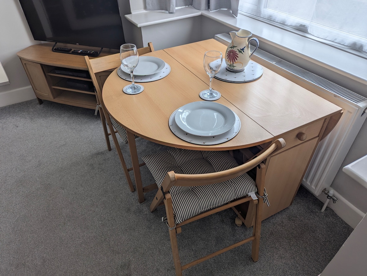 Alt på første sal med separat indgang - vi bor nedenunder. Tilpasningsdygtig - kontakt for at diskutere mere end tre gæster. Består af to dobbeltsoveværelser (en almindelig dobbeltseng og en lille dobbeltseng), brusebad og separat opholdsområde. Stuen/spisepladsen har et lille tekøkkenområde med køleskab, mikrobølgeovn, kedel, enkelt kogeplade og brødrister samt spisebord til fire. Har også et lille opholdsområde med et smart-tv. Højhastigheds-WiFi, centralvarme, parkering på vejen (afhængigt af køretøjets størrelse).