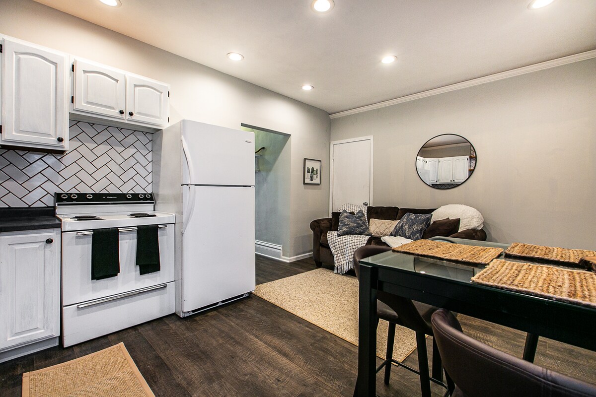 Oplev hjertet af Dubuque fra denne rene, hyggelige lejlighed på anden sal i nærheden af spisesteder, hospitaler, barer og caféer. Nyrenoveret med højhastighedsinternet, et 50" smart-tv og vaskeri i boligen. Kun 5 minutter fra centrum, 20 minutter fra Galena, tæt på Loras, UD og Clarke og inden for 30 minutter fra skisportssteder og Field of Dreams. Bemærk: Der er adgang til enheden på anden sal via trapper. Perfekt til forretningsrejser, weekendophold eller længerevarende ophold med komfort, privatliv og bekvemmelighed. Book i dag.