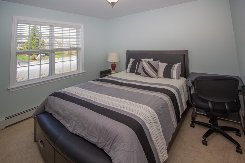 1 queensize-dobbeltseng. Åbent koncept. Denne beliggenhed ved søen giver dig afslapning og rolige omgivelser. Yogamåtter, du kan bruge indenfor eller på terrassen ved søen. Tekøkken og stue. Badeværelse i tre dele. Opbevaringsrum til bagage. Privat terrasse til en drink efter en travl dag. Gratis parkering, 20 minutter til Halifax. Bell Park 2 km stier.