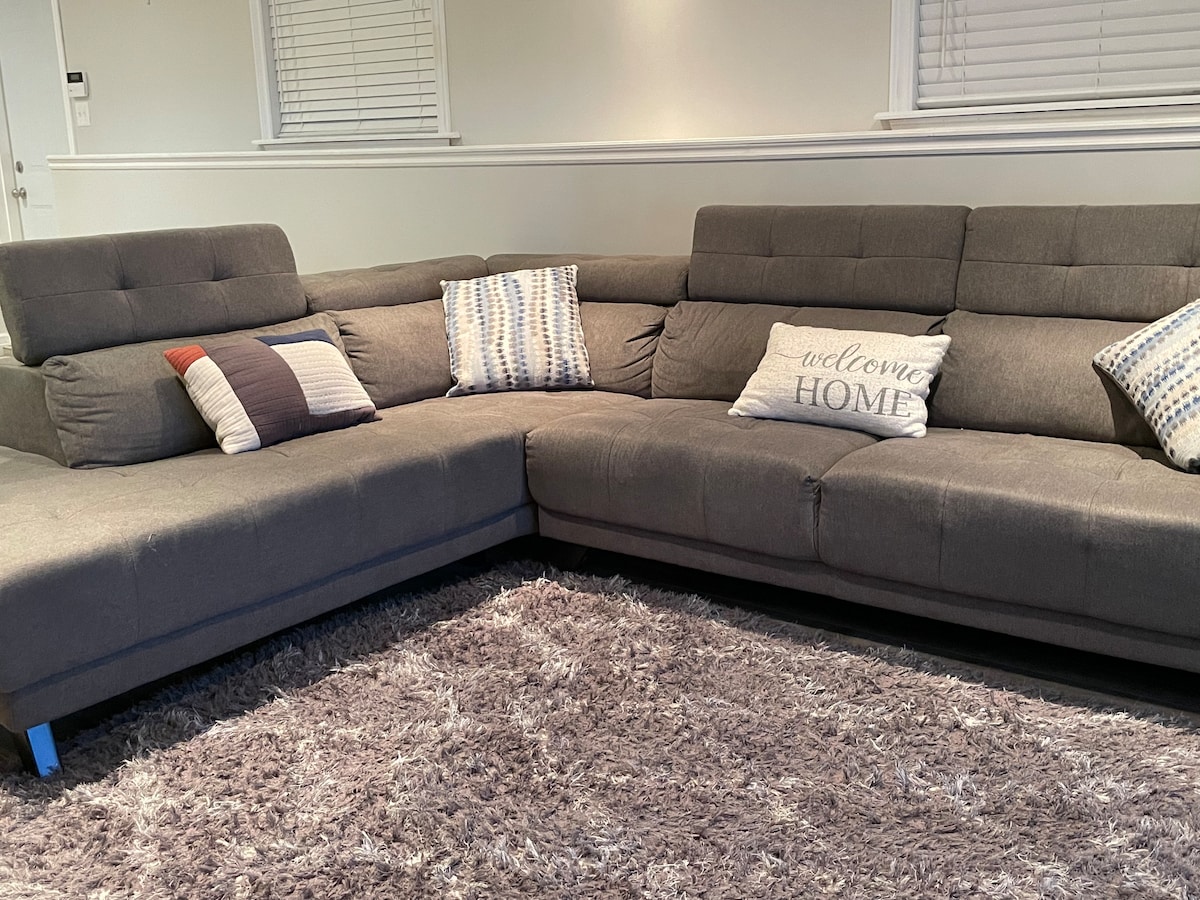 Tag hele familien med til dette fantastiske sted med over 1000 kvadratfod og masser af plads til sjov. Vi har to queensize-senge, en i soveværelset og en, der er føjet til hovedstuen, samt en sovesofa. Døren til suiten er placeret på bagsiden af boligen.