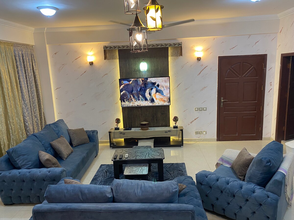 Et sted, der er varmt nok til at kalde hjem. Fuldt møbleret tre soveværelser, herunder to balkoner, lejlighed beliggende i centrum af Khartoum med fuld og nem adgang til forskellige supermarkeder, vaskerier, apoteker, banker, frisørsaloner, caféer og lufthavnen. Køkkenet er fuldt udstyret og andre krav på anmodning. Wi-fi og generator til rådighed. Afhentning i lufthavnen.