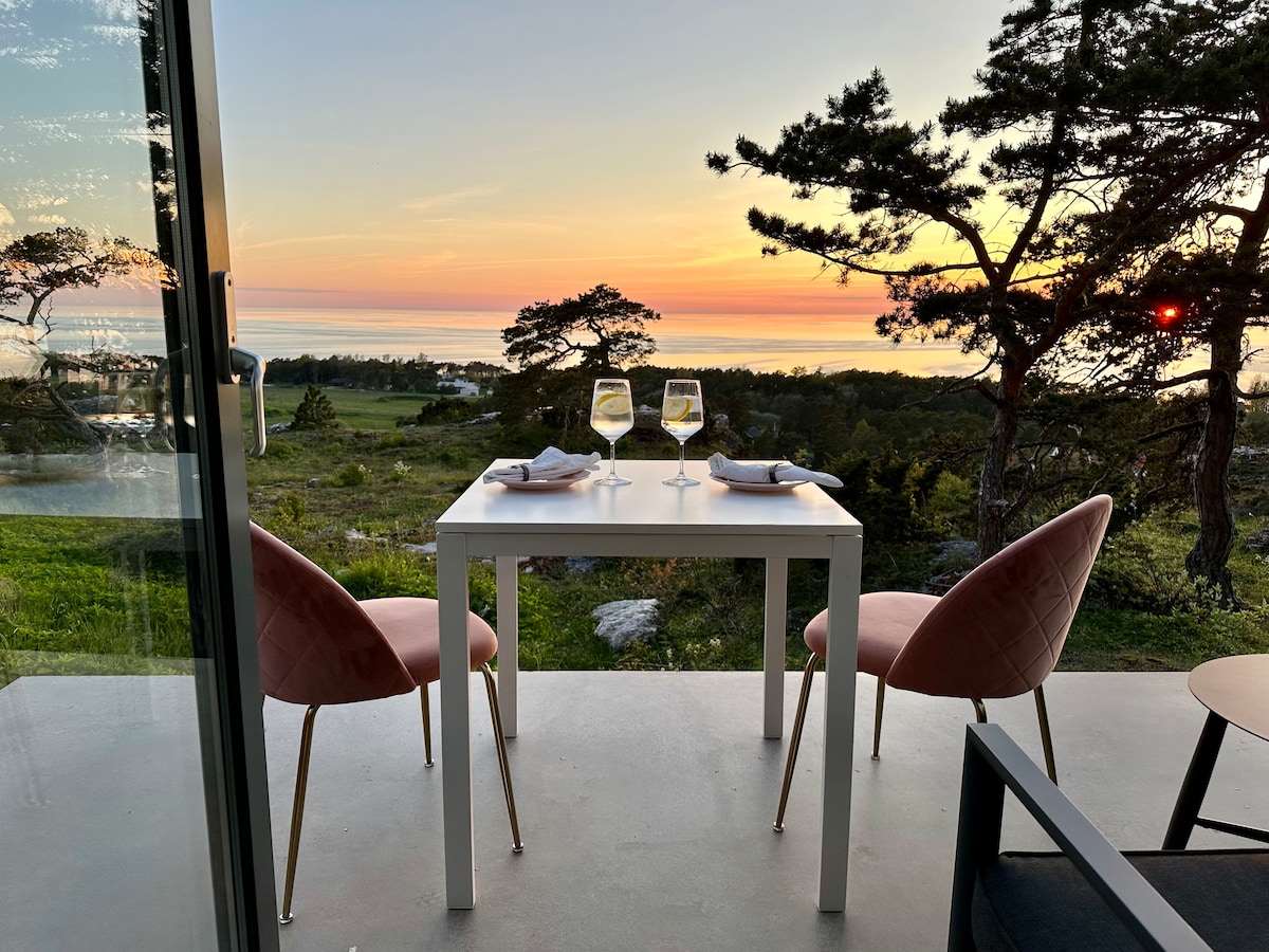 Slap af i denne unikke og rolige bolig. En helt nybygget lejlighedsbygning med et soveloft, et soveværelse og et fuldt udstyret køkken og badeværelse. Mellem to naturreservater, 20-30 minutters gang ind til Visby ringmur og 5 minutter til stranden. Naturskøn havudsigt fra grunden oppe på klippen med Visbys mest populære vandre-/joggestier lige uden for døren. Weber boldgrill og terrasse i husly til dejlige forårs- og sommeraftener. Om sommeren er der også to sengebod (uden elektricitet) på grunden.