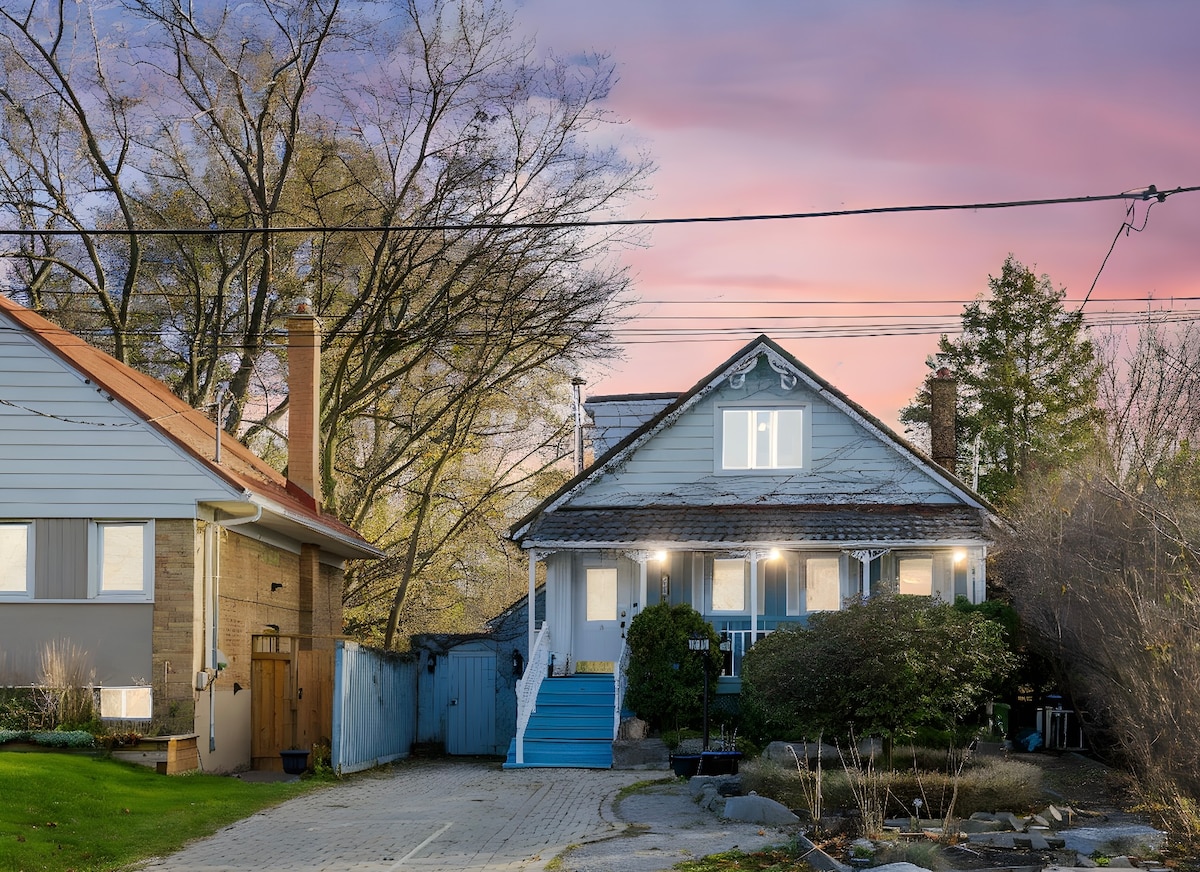 – Charmerende fritstående Century-hjem på hjørneplads - Familievenlig, sikker, rolig, grøn gade - Trin til strandpromenaden ved Lake Ontario - Mange nærliggende butikker, caféer og fantastiske restauranter - Privat haveoase med den fantastiske terrasse - Gadeparkering til rådighed (med køb af tilladelse) - 7 km til centrum af Toronto