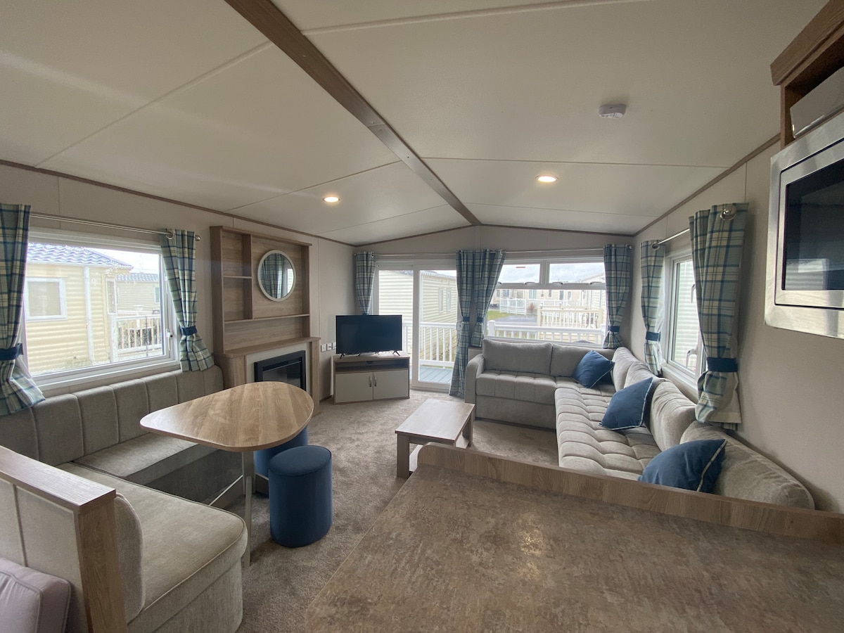 Danis feriehus ligger i Pevensey Bay Holiday Park og er et stenkast væk fra stranden..bogstaveligt talt! Et godt sted at slappe af og nyde havbrisen eller nyde med din familie med så mange sjove ting at lave,Eastbourne Pier kun ti minutters kørsel væk. Hytten blev bygget i 2023 og er et værelse med to senge, Ejendom på 1,5 badeværelse med plads til op til 6 personer. Det har et fuldt udstyret køkken, stue, hvor sofaen bliver til en dobbelt sovesofa og også en privat balkon med gratis parkering